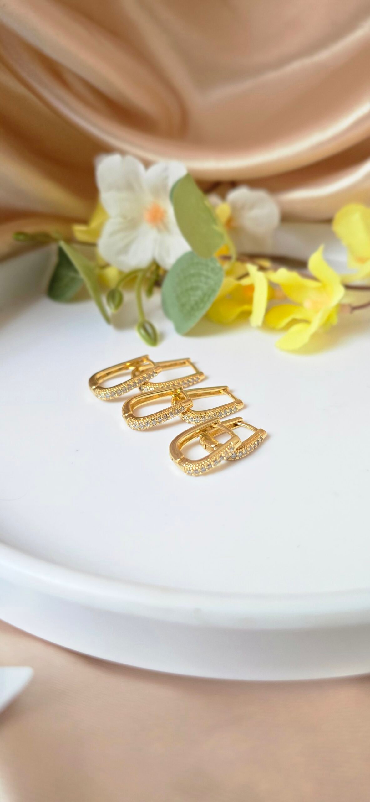 ✨ Brinco Argola Click Retangular Cravejada em Zircônias
