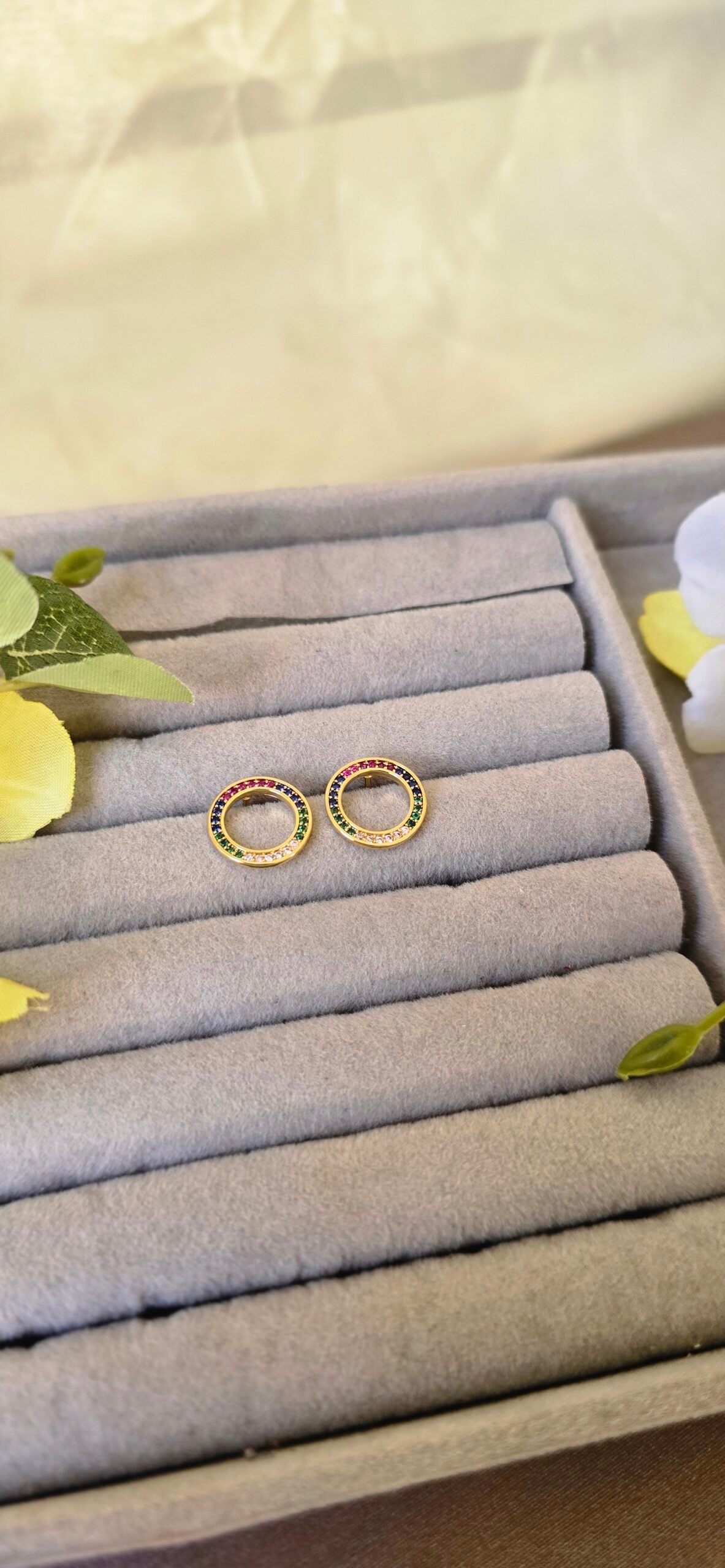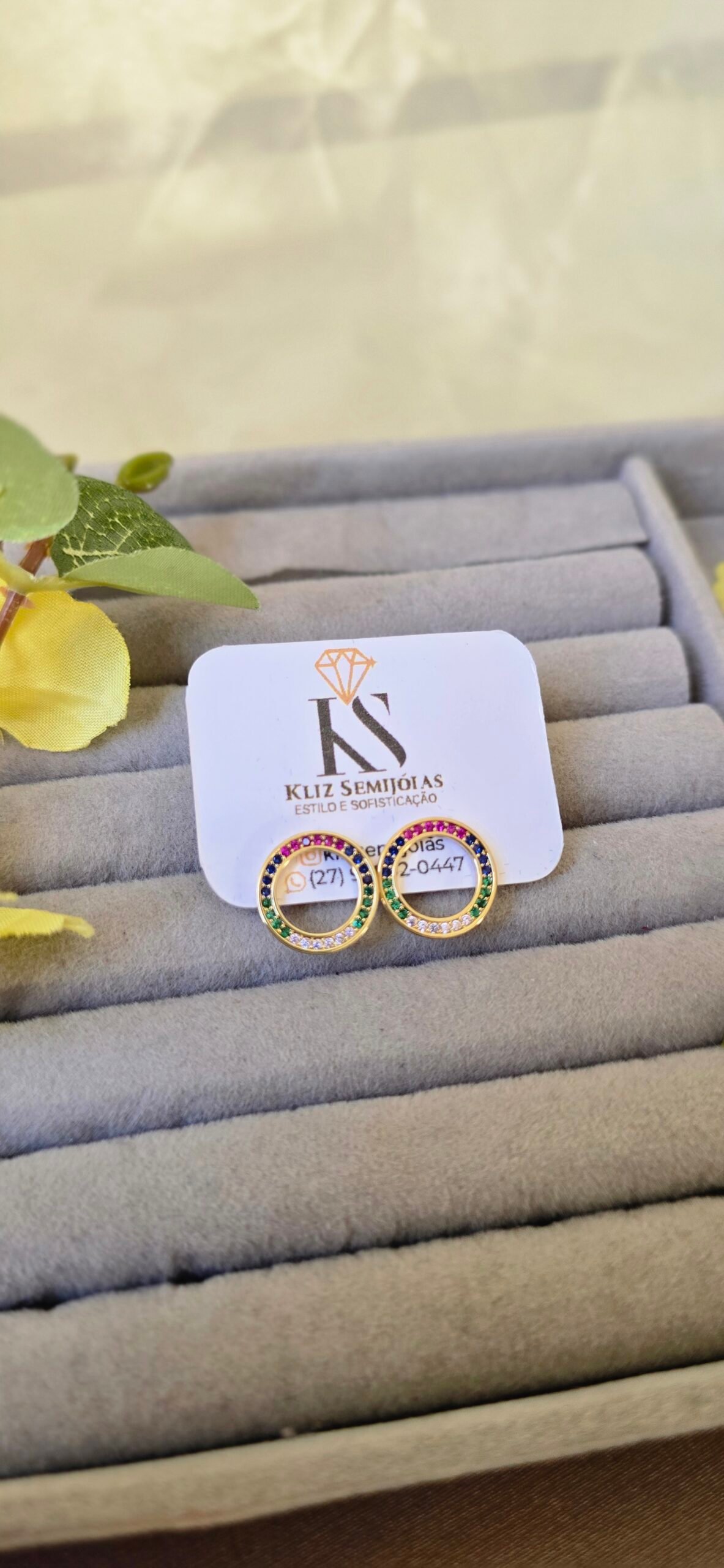 ✨Brinco Dourado Circular com Zircônias Coloridas – Sofisticação e Brilho