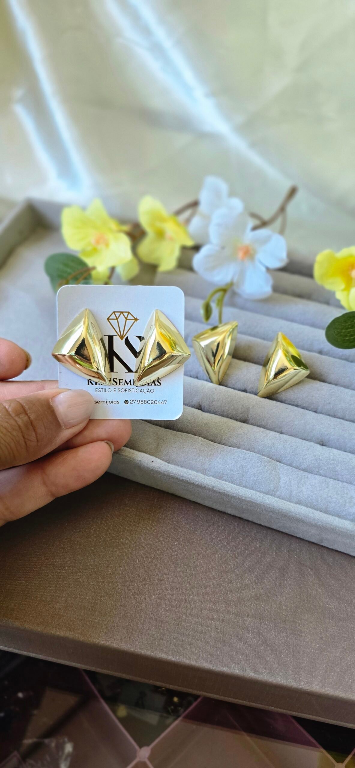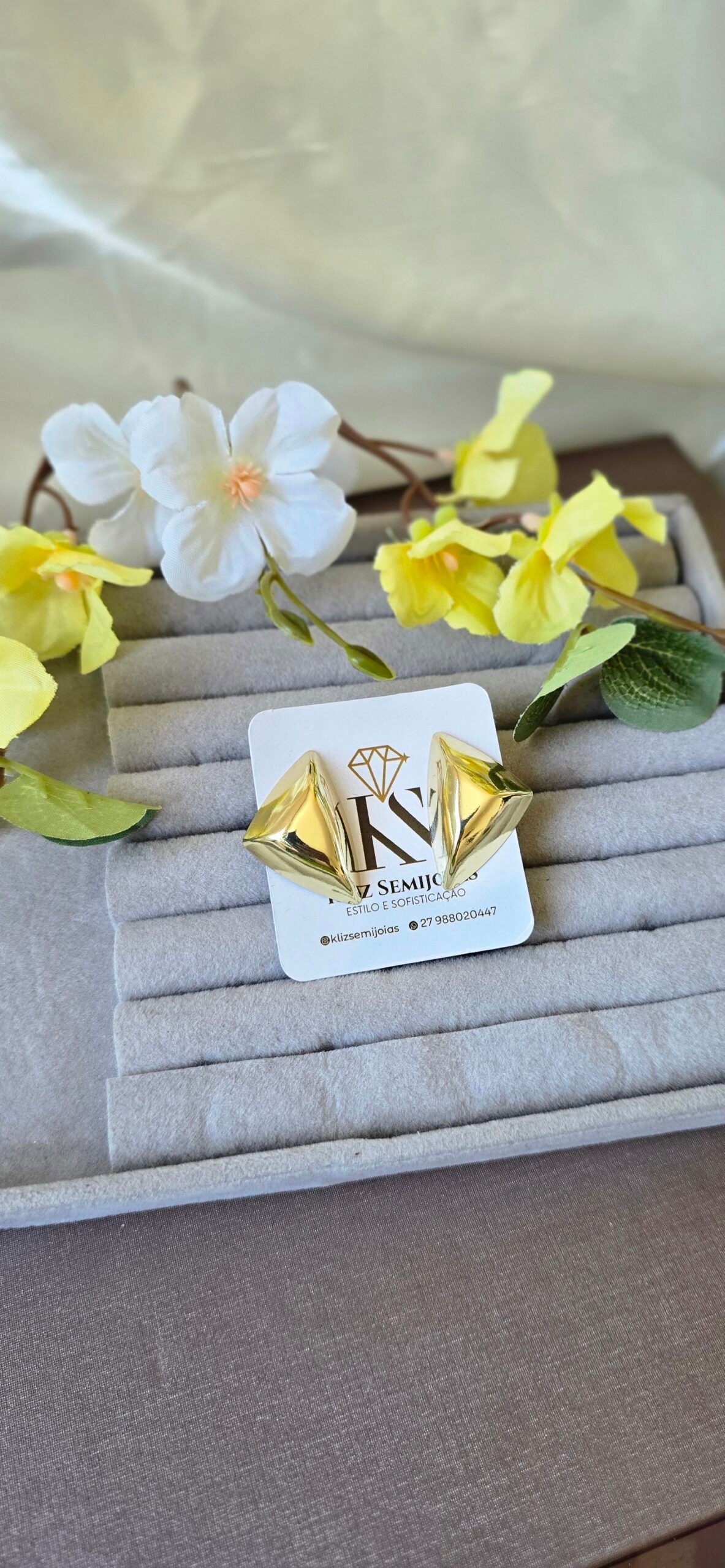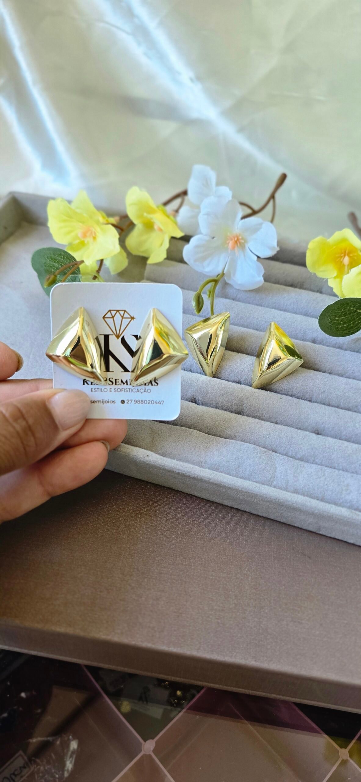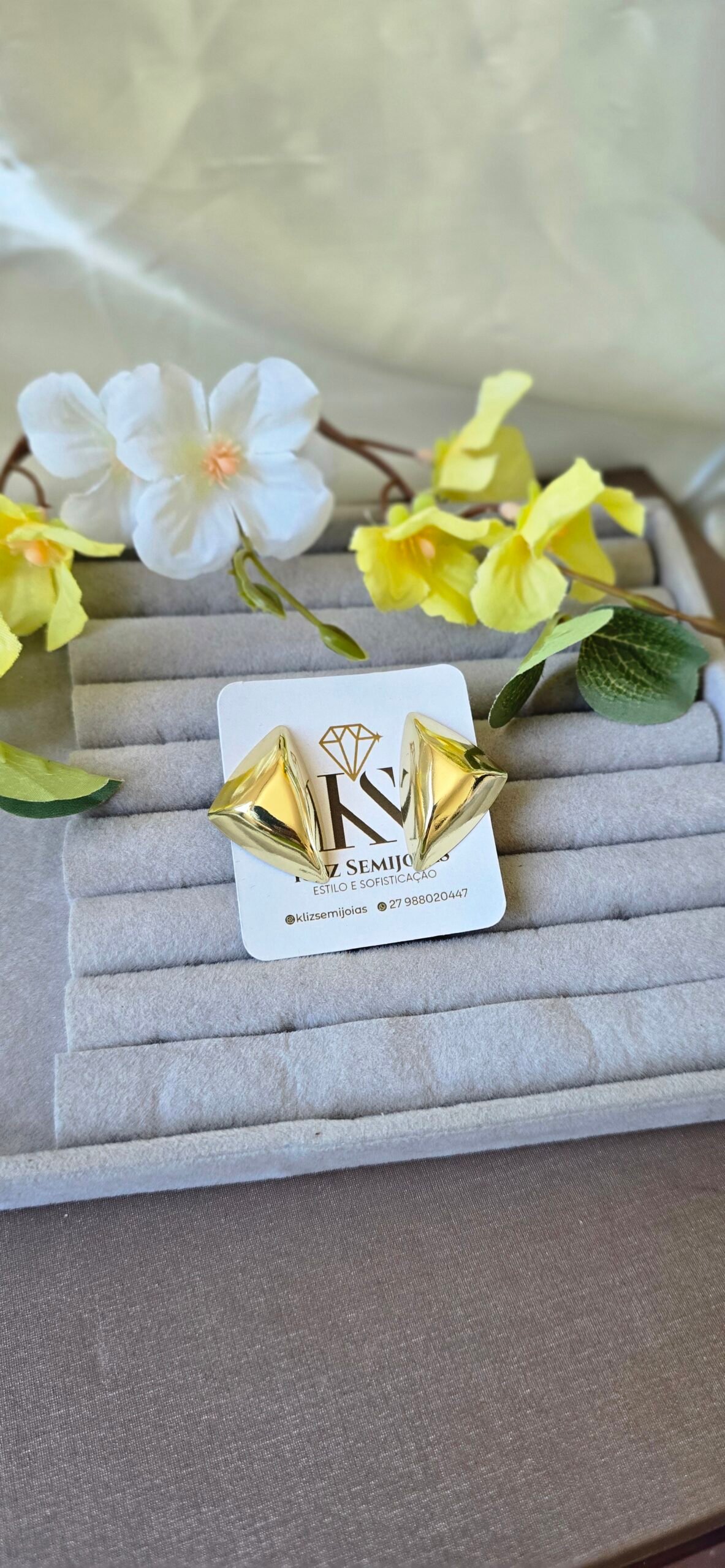 ✨Brinco Dourado Pirâmide Maxi – Poder, Estilo e Sofisticação em Destaque