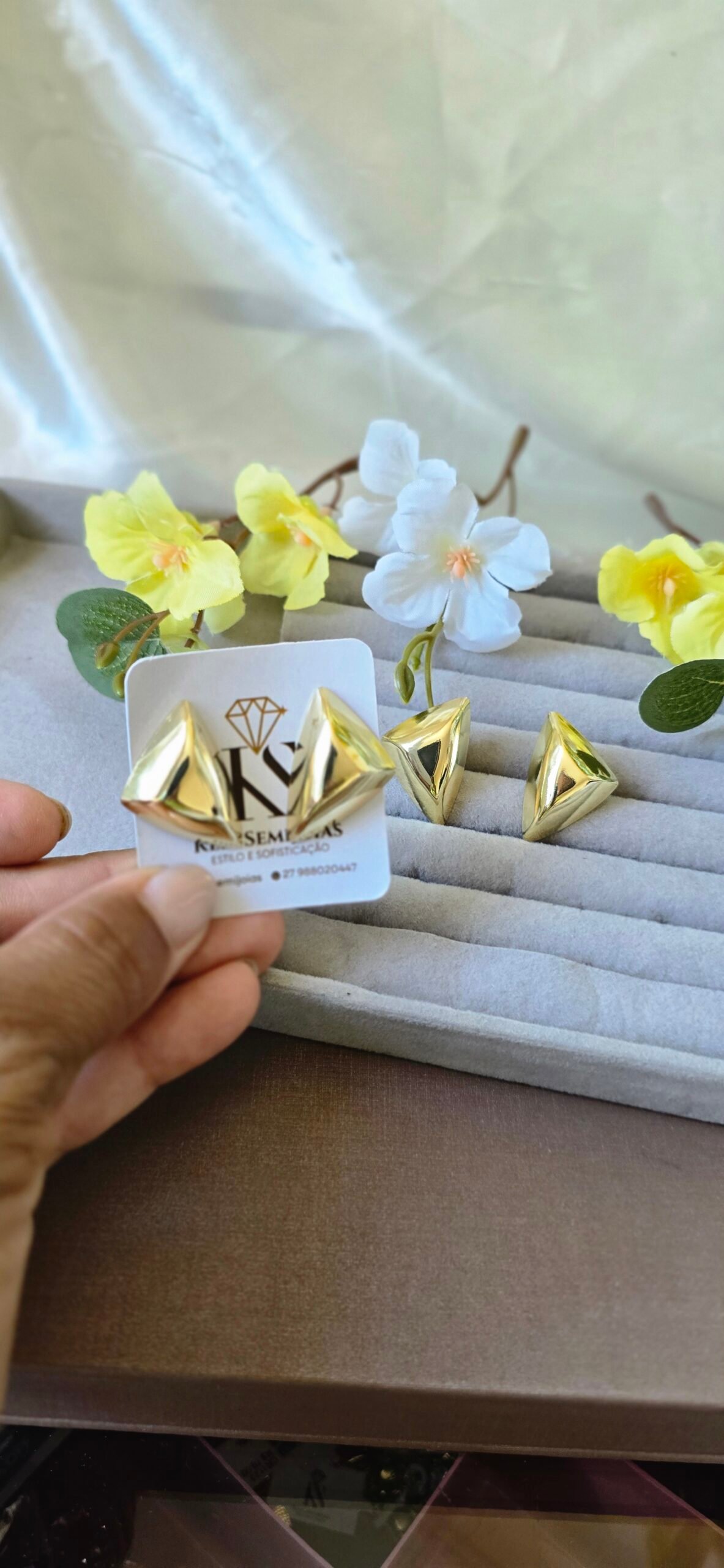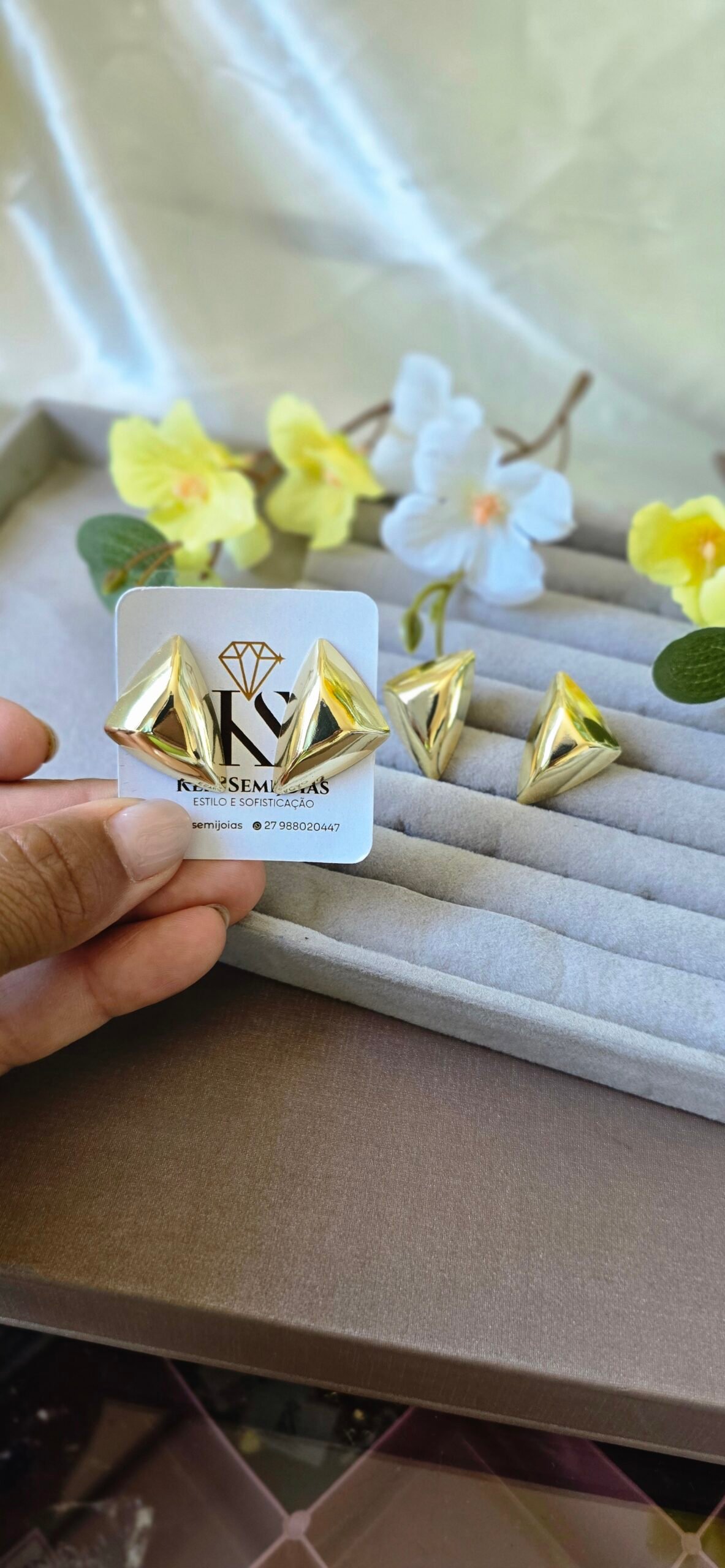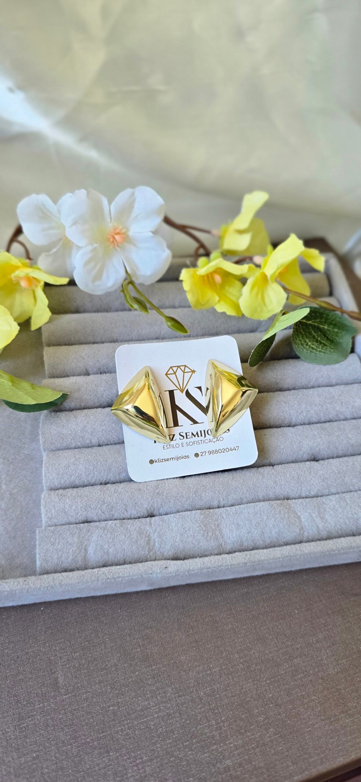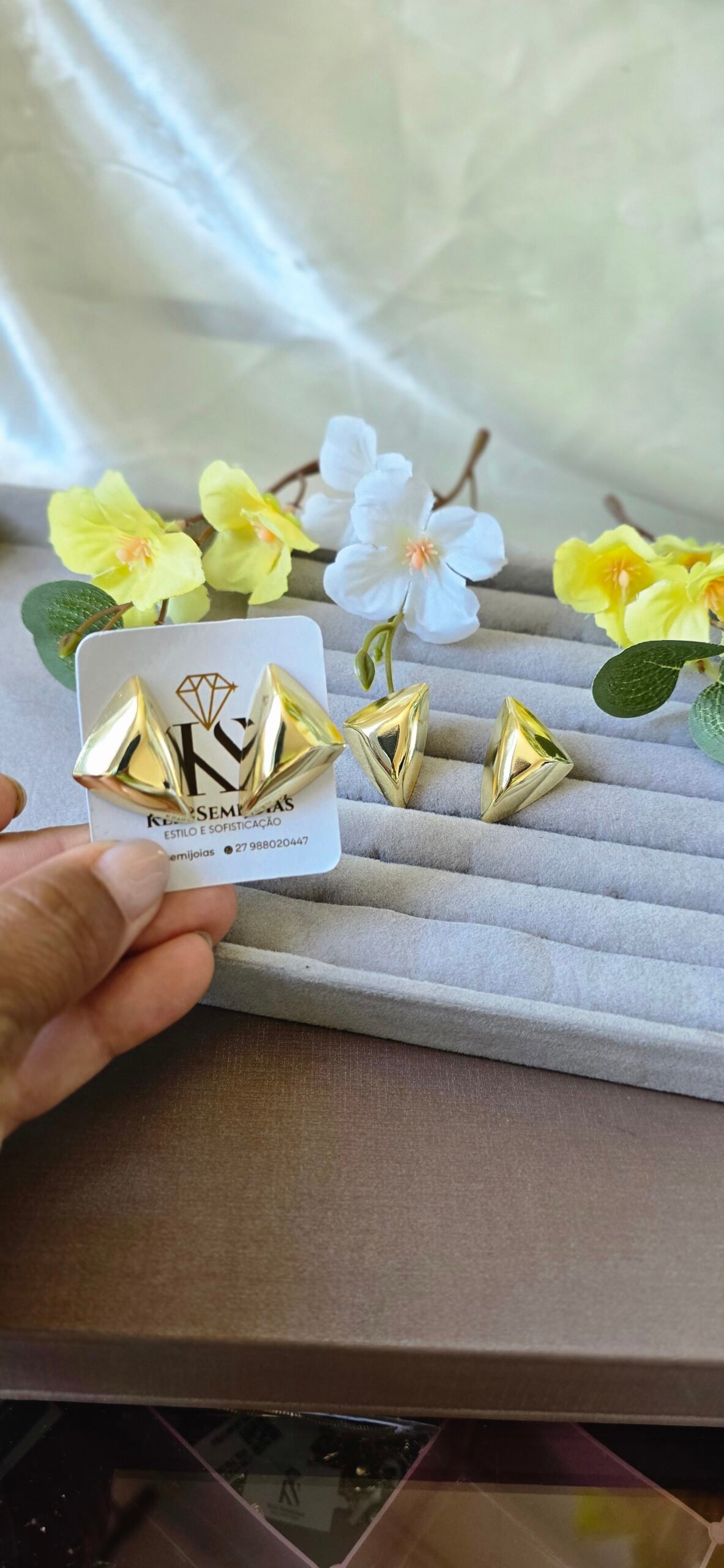 ✨Brinco Dourado Pirâmide Maxi – Poder, Estilo e Sofisticação em Destaque