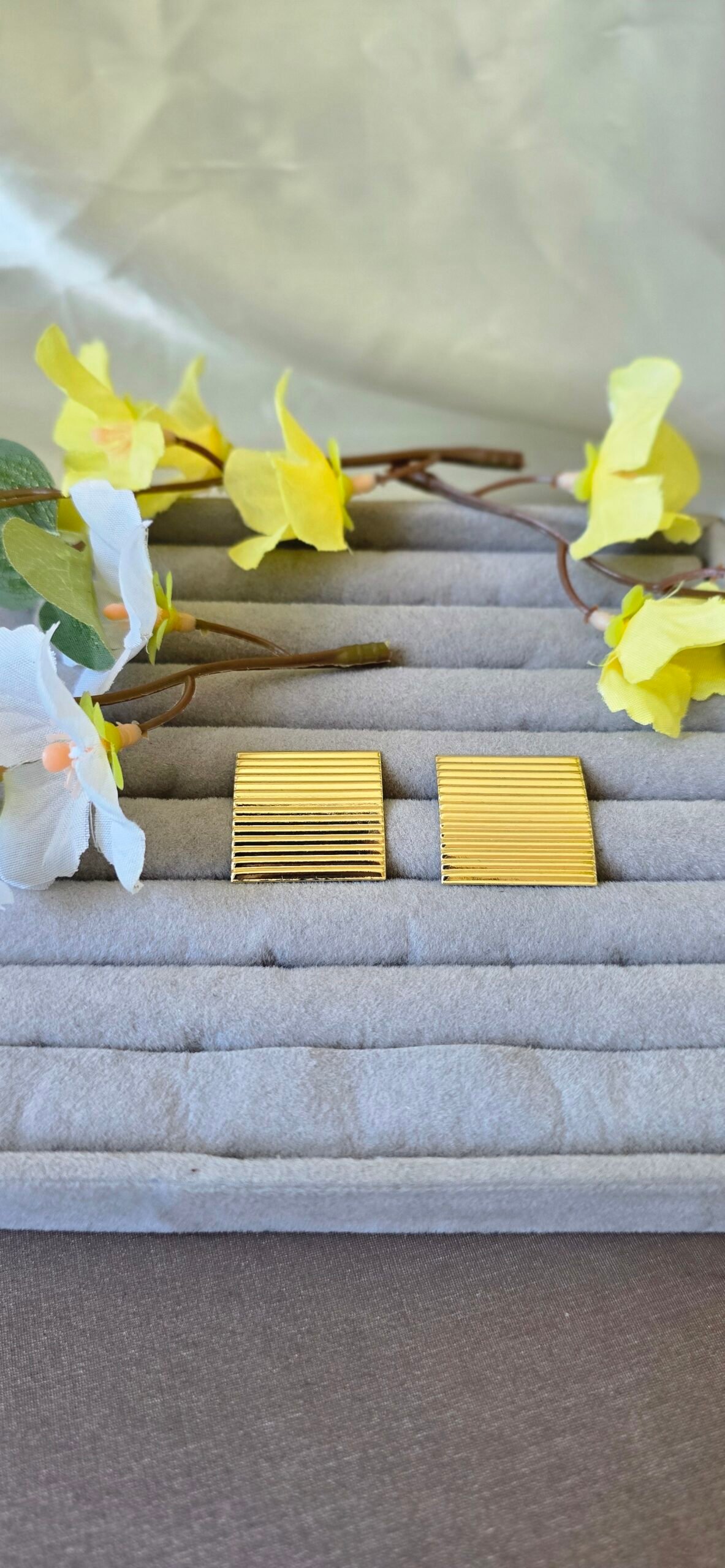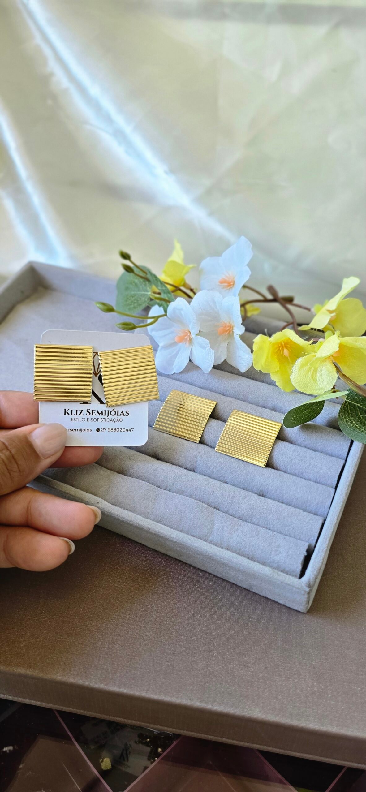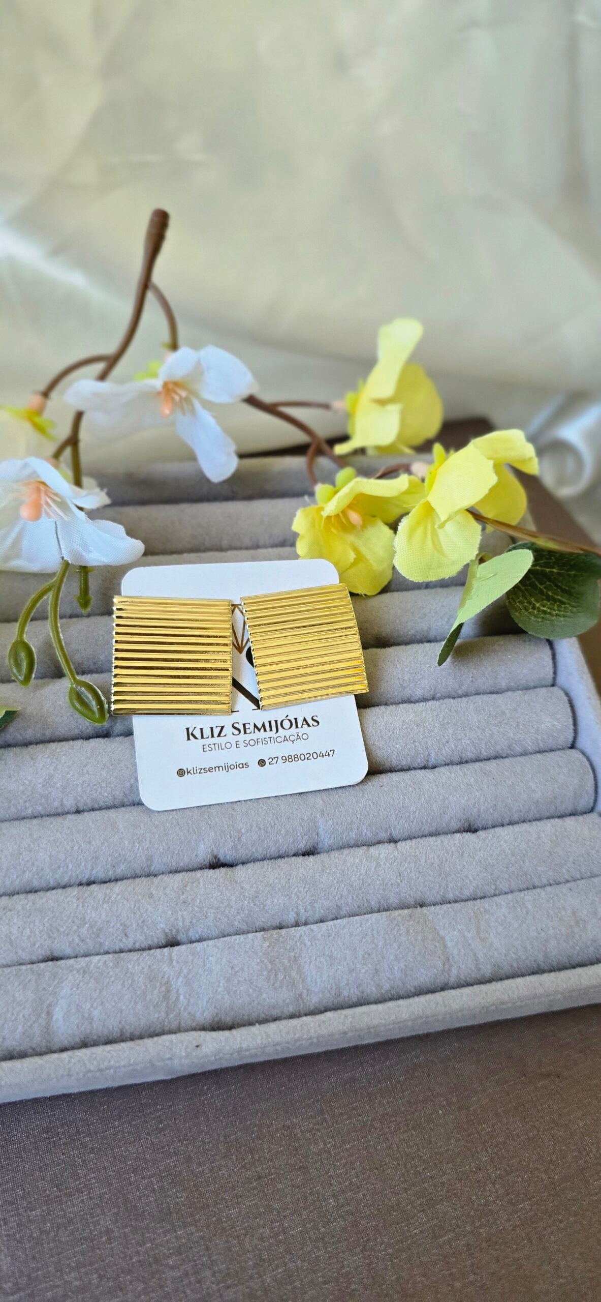 Elegância com personalidade em cada detalhe. O Brinco Quadrado Dourado Texturizado se destaca pelo acabamento com frisos delicados, que criam um efeito moderno e sofisticado, refletindo a luz de forma sutil e charmosa.