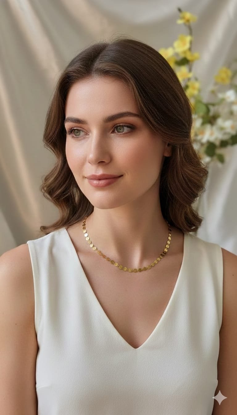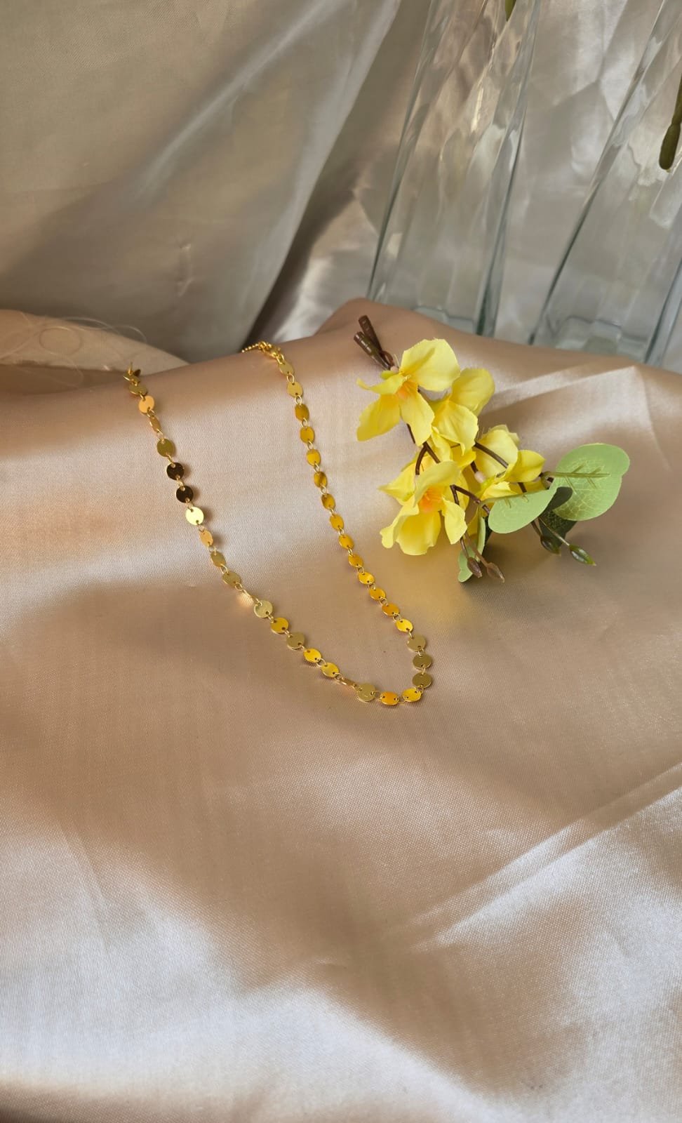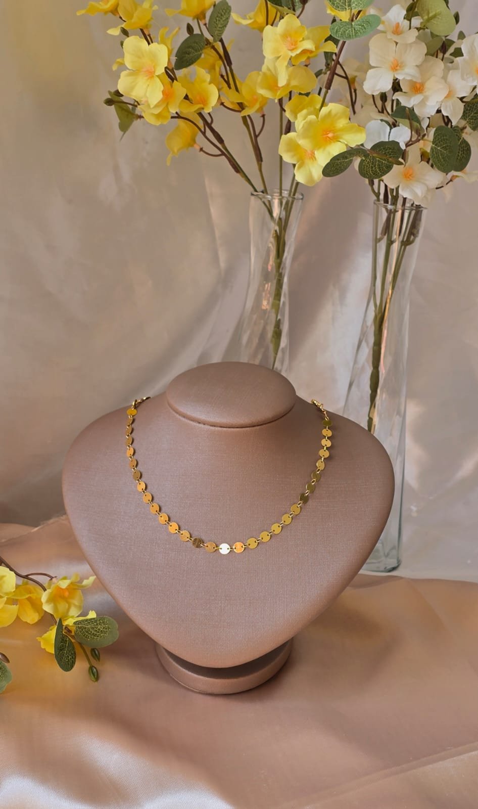O colar ideal para quem ama elegância com delicadeza. Composto por medalhas lisas delicadamente interligadas, esse colar dourado possui um design moderno e atemporal, que reflete a luz com sutileza, garantindo um brilho sofisticado em qualquer produção.