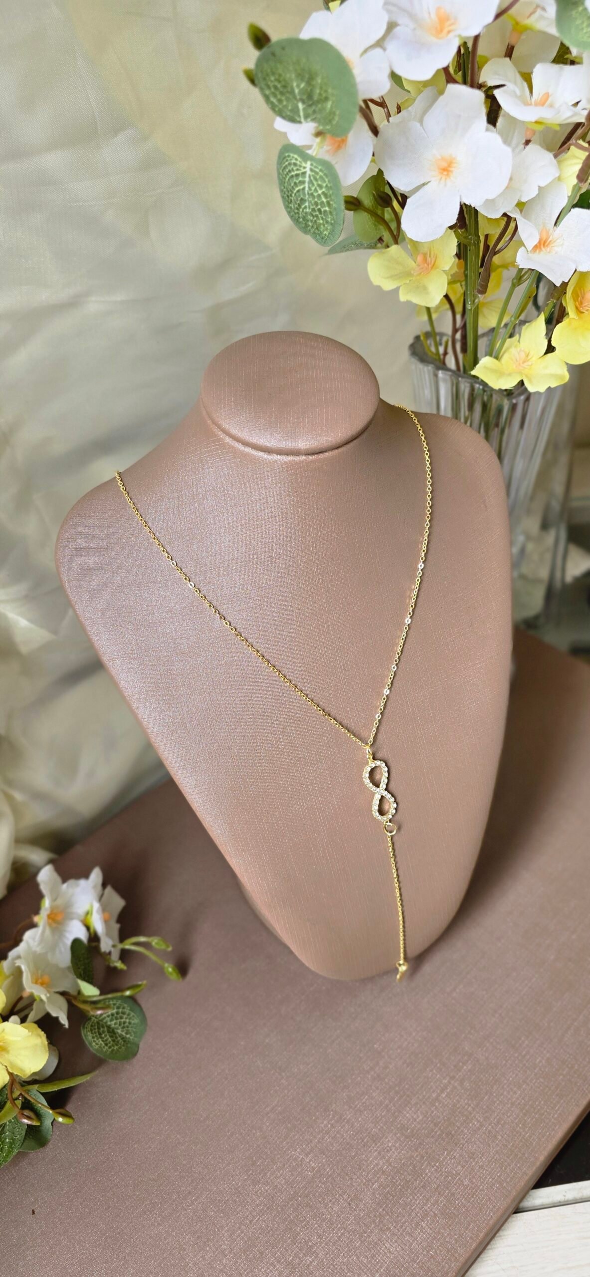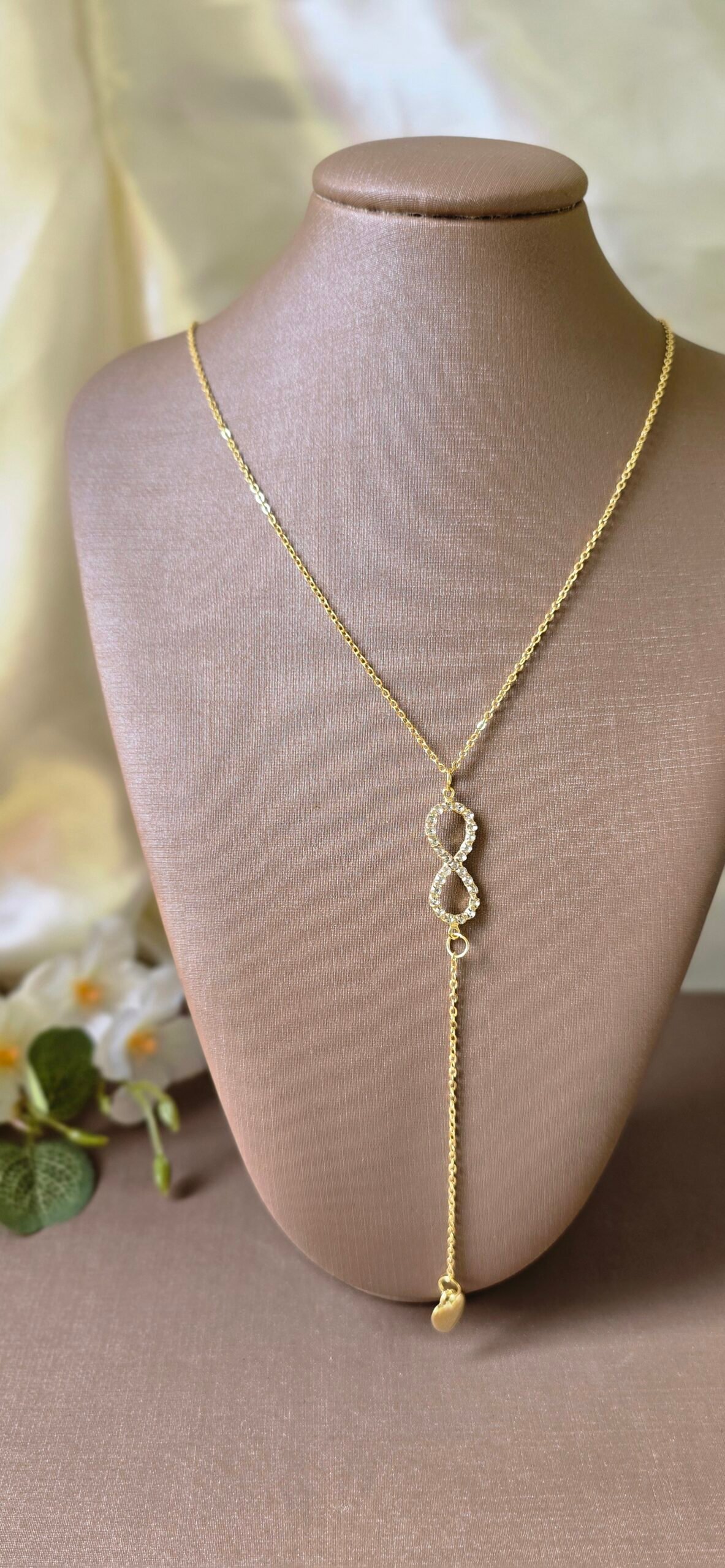 ✨Colar Dourado Feminino Gravatinha Infinito em Zircônias