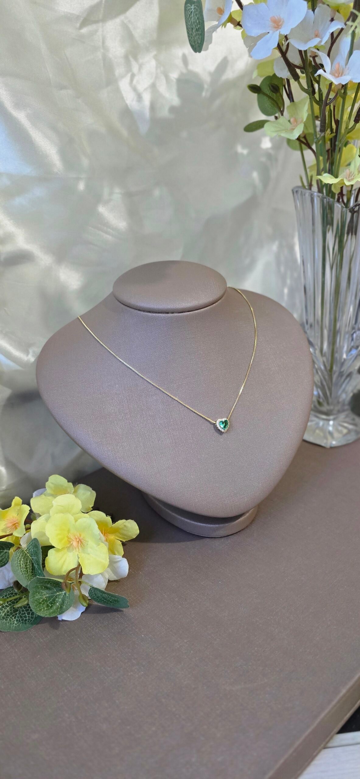 Delicado e sofisticado, o Colar e Brinco Coração Esmeralda Cravejado em Zircônias é a escolha perfeita para quem ama joias com brilho e elegância. A pedra em tom esmeralda traz um toque de cor refinado, enquanto as zircônias cravejadas ao redor realçam ainda mais o brilho da peça.