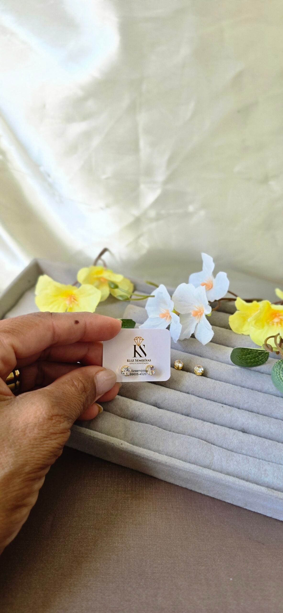 • Brinco Ponto de Luz Dourado com Zircônia 4mm