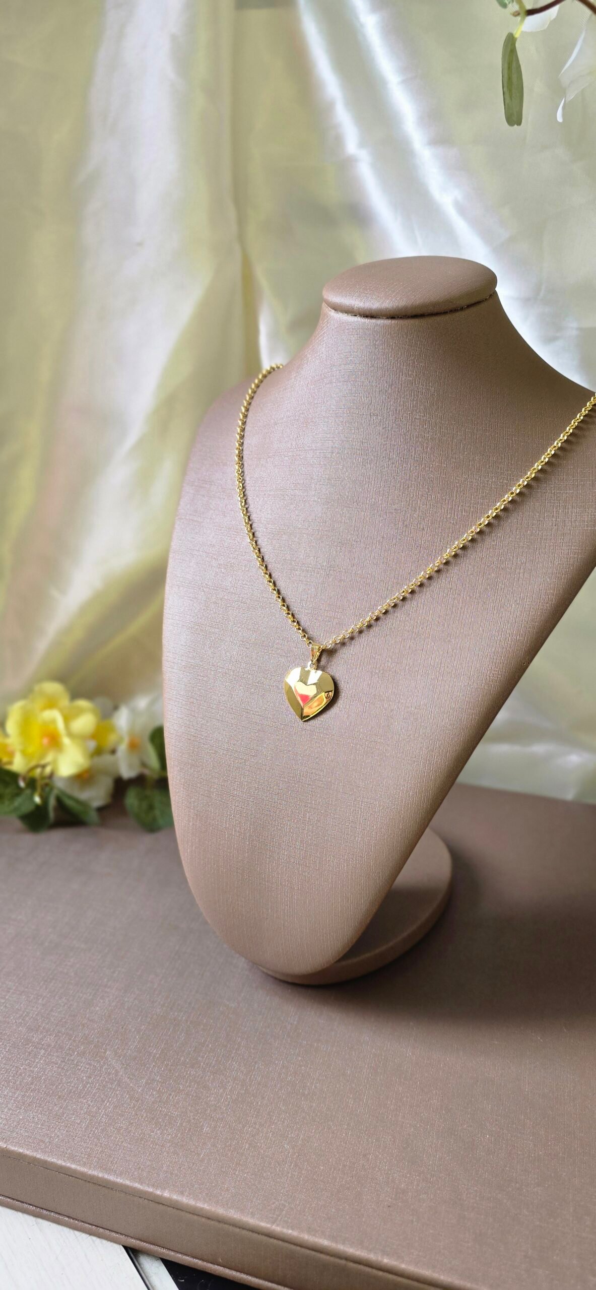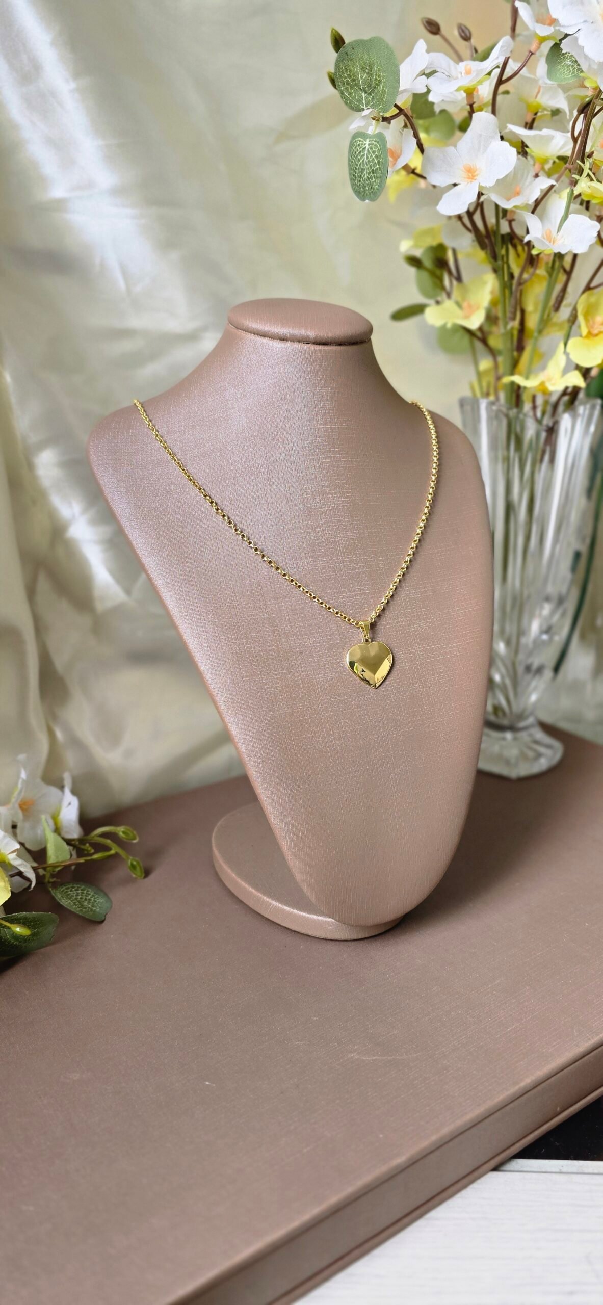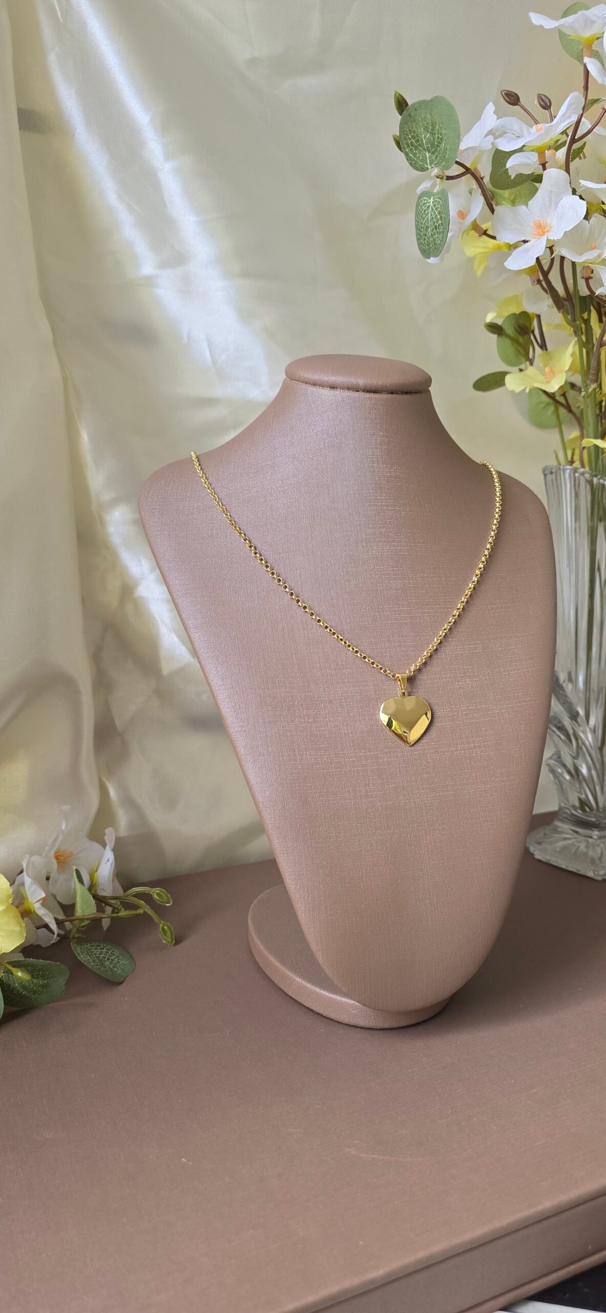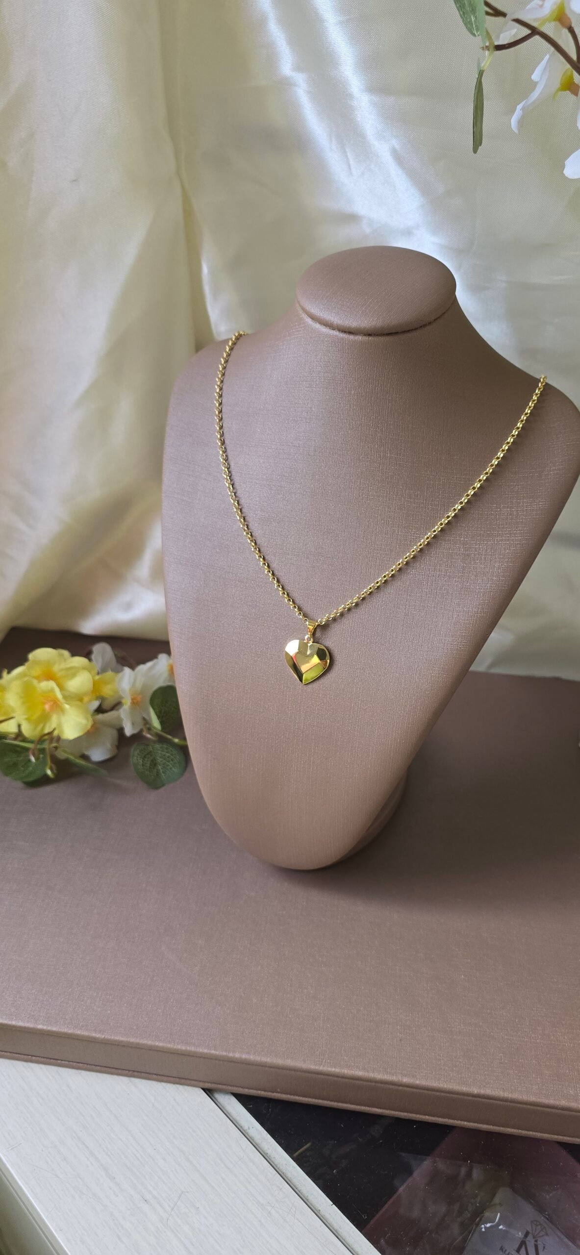 Colar feminino dourado com pingente de coração facetado