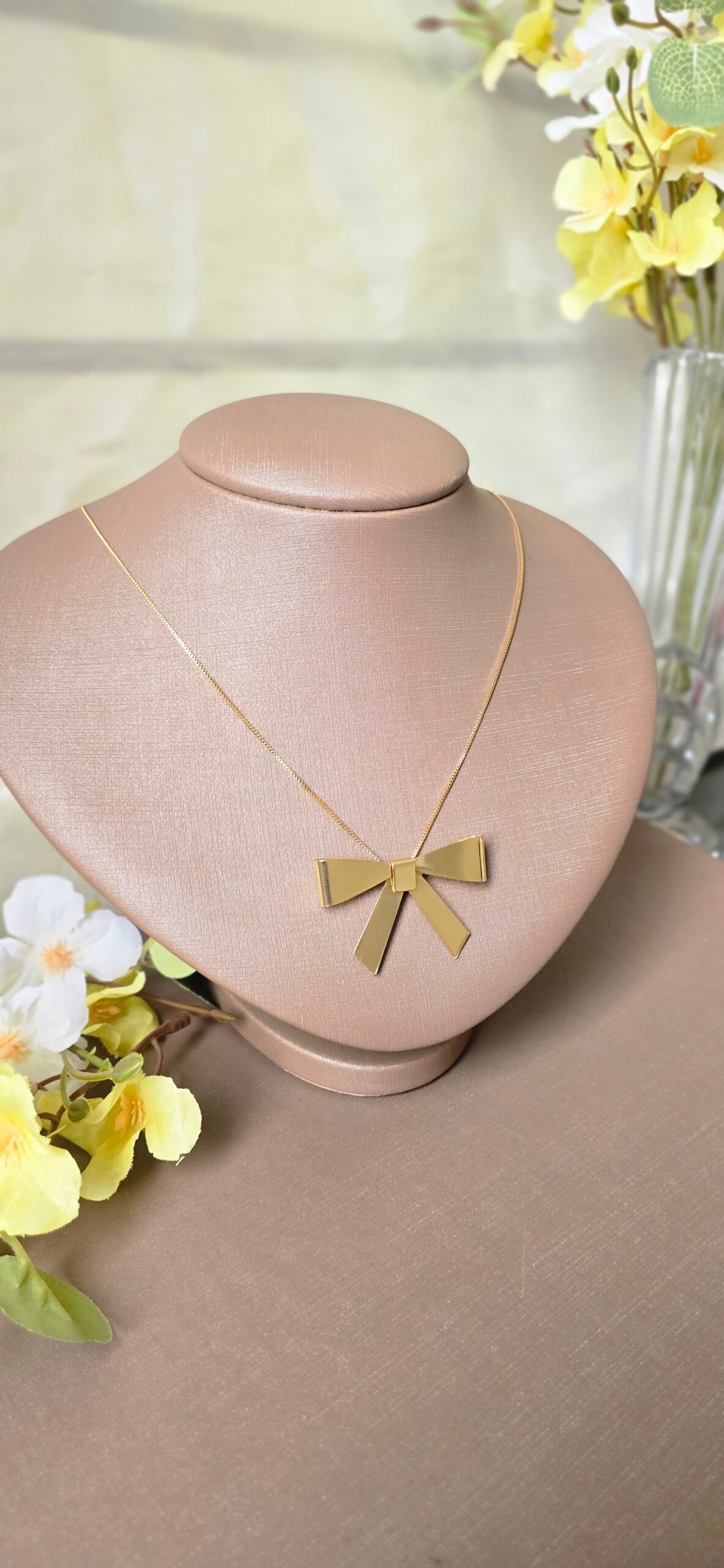 É a escolha perfeita para quem busca uma joia moderna com um toque de delicadeza. Seu pingente em formato de laço traz um design elegante e contemporâneo, capaz de transformar qualquer produção com charme e sofisticação.