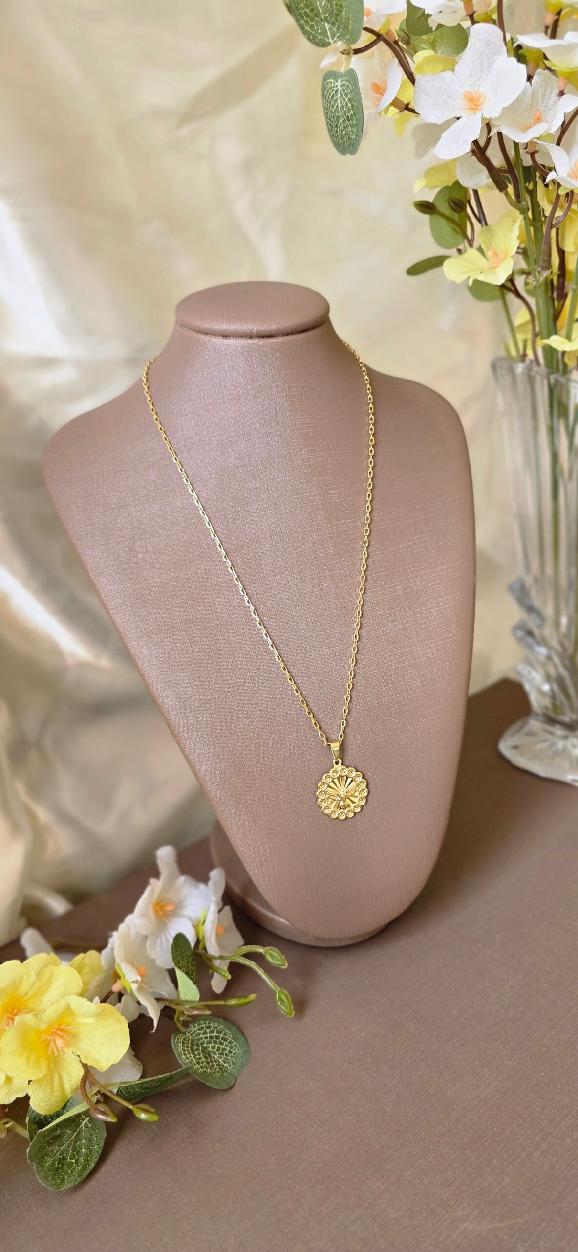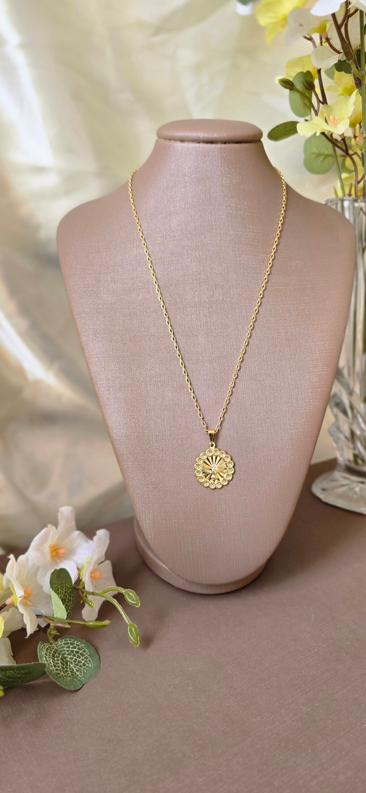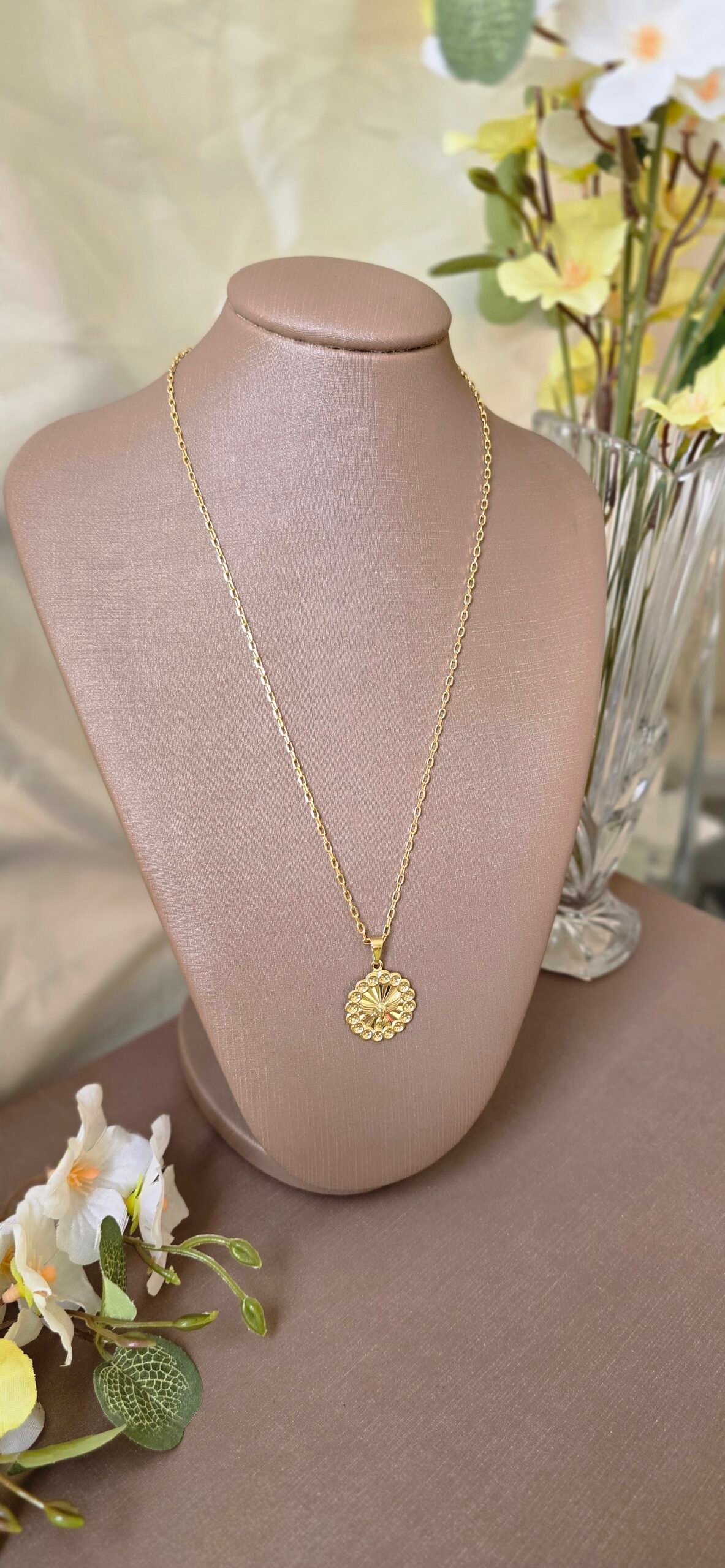Colar feminino dourado com pingente mandala do Espírito Santo