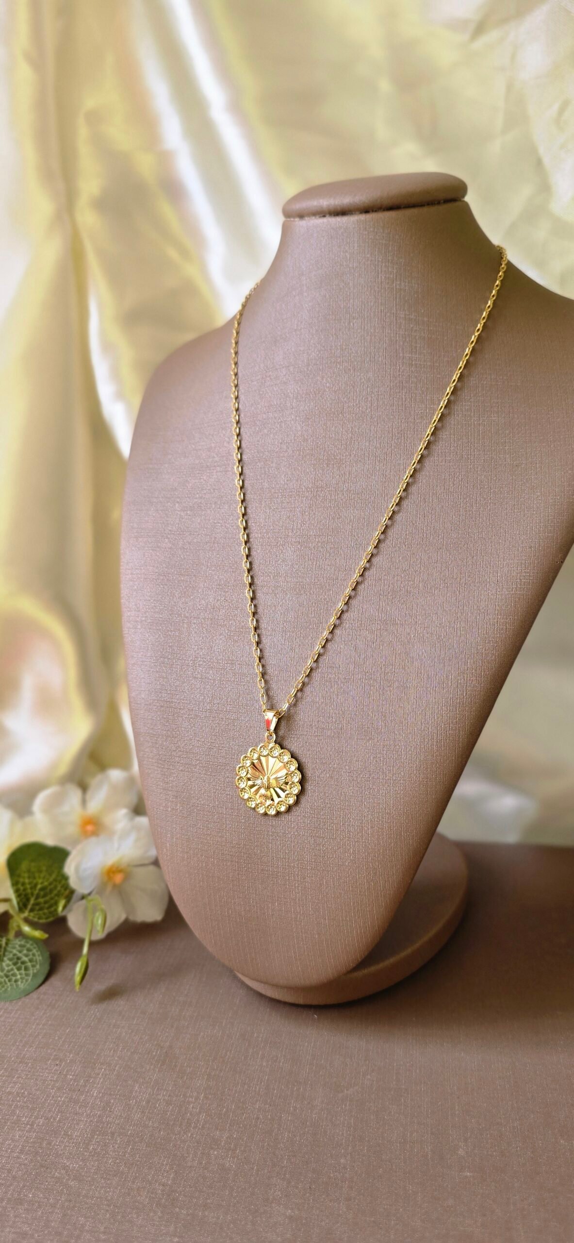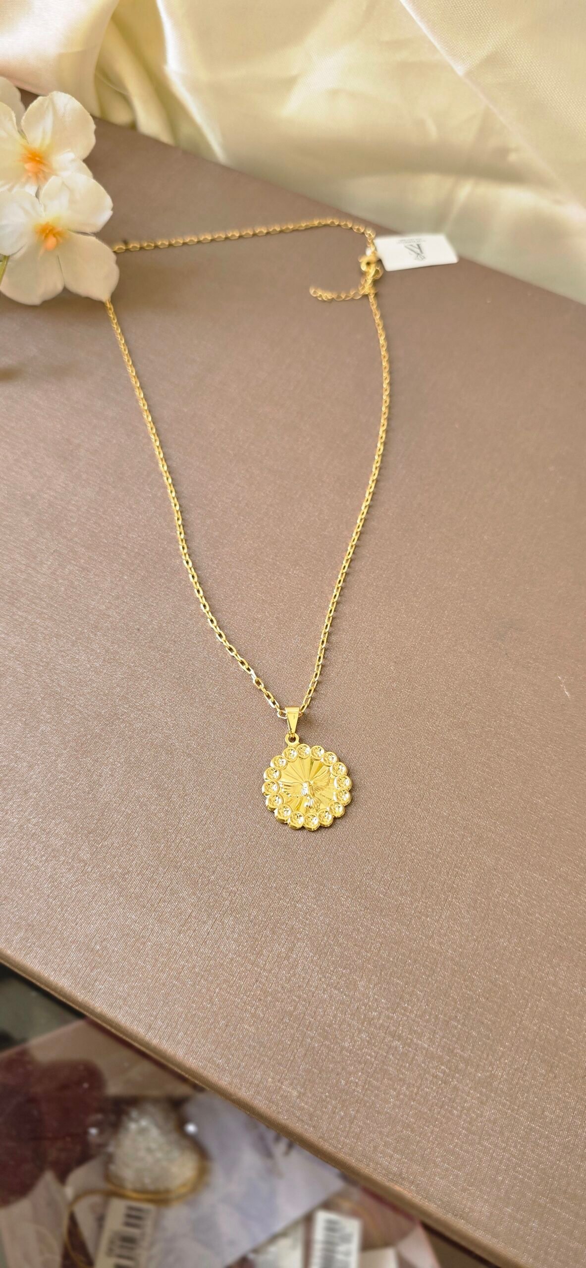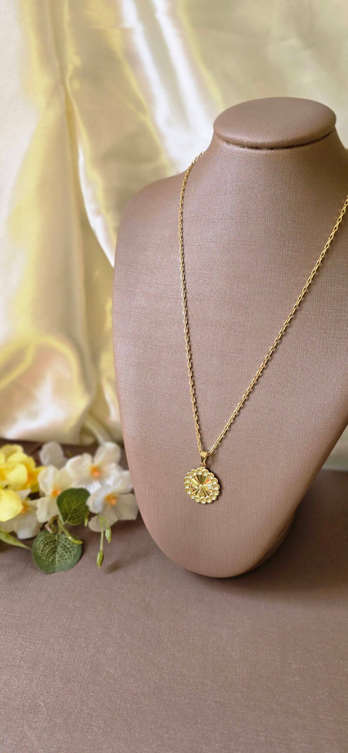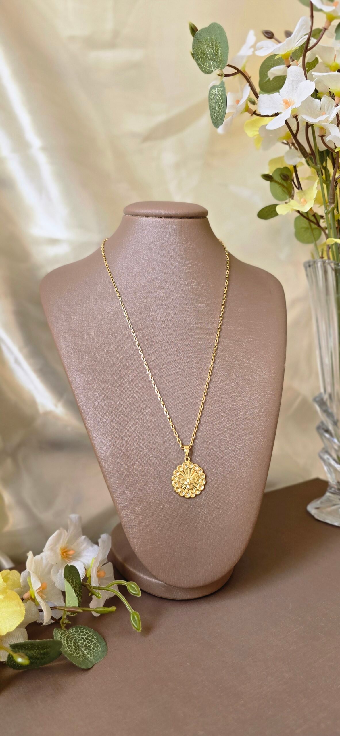 Colar feminino dourado com pingente mandala do Espírito Santo