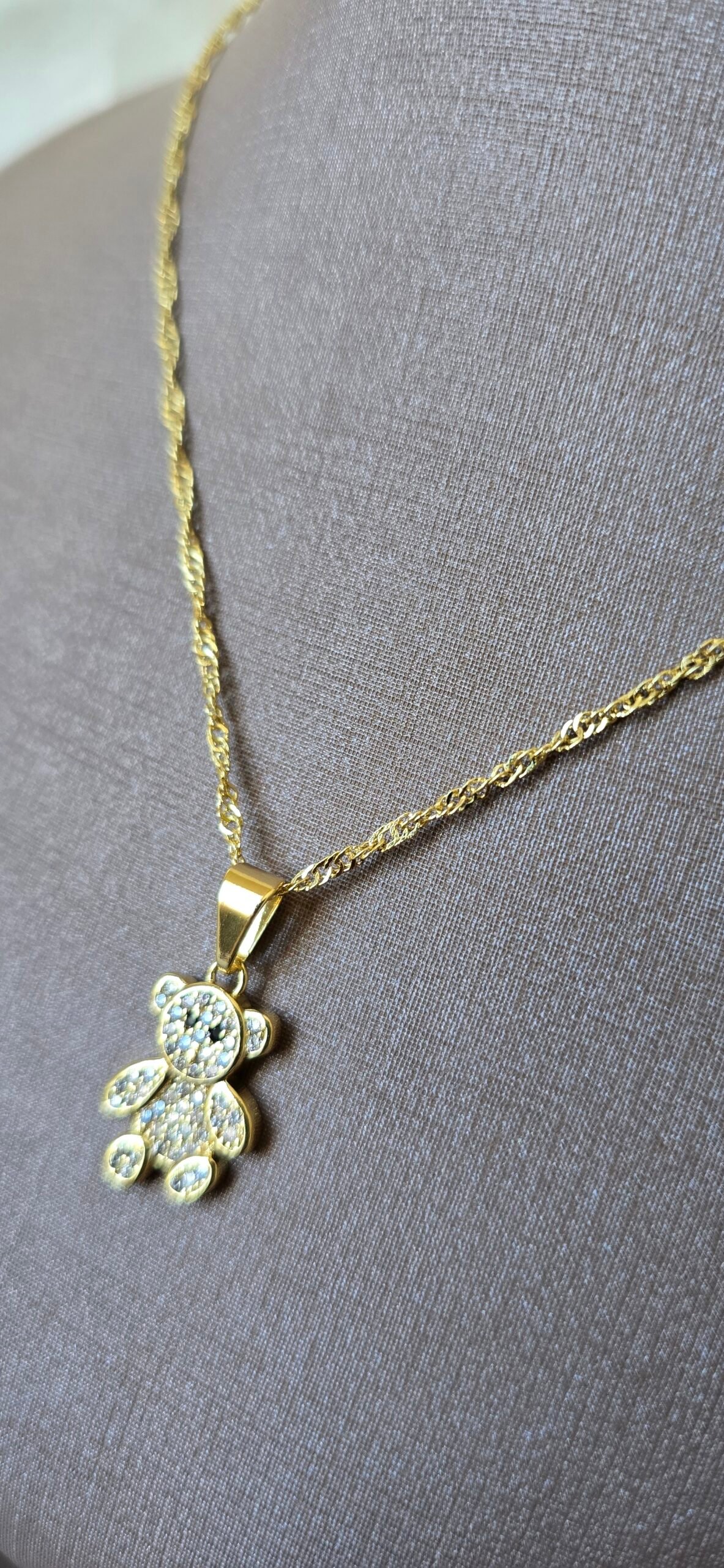 Seu pingente em formato de ursinho simboliza afeto, proteção e amor — tornando essa peça ainda mais especial. As zircônias cravejadas proporcionam um brilho sofisticado, enquanto o acabamento dourado traz elegância para qualquer ocasião.