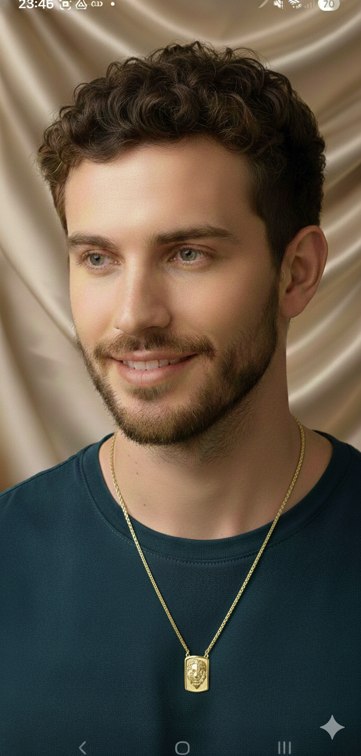 A placa com o leão simboliza força, coragem, liderança e proteção — tornando o cordão não apenas um acessório, mas uma expressão de identidade e fé interior. Seu acabamento dourado sofisticado garante brilho elegante na medida certa, combinando perfeitamente com diferentes estilos, do casual ao mais alinhado.