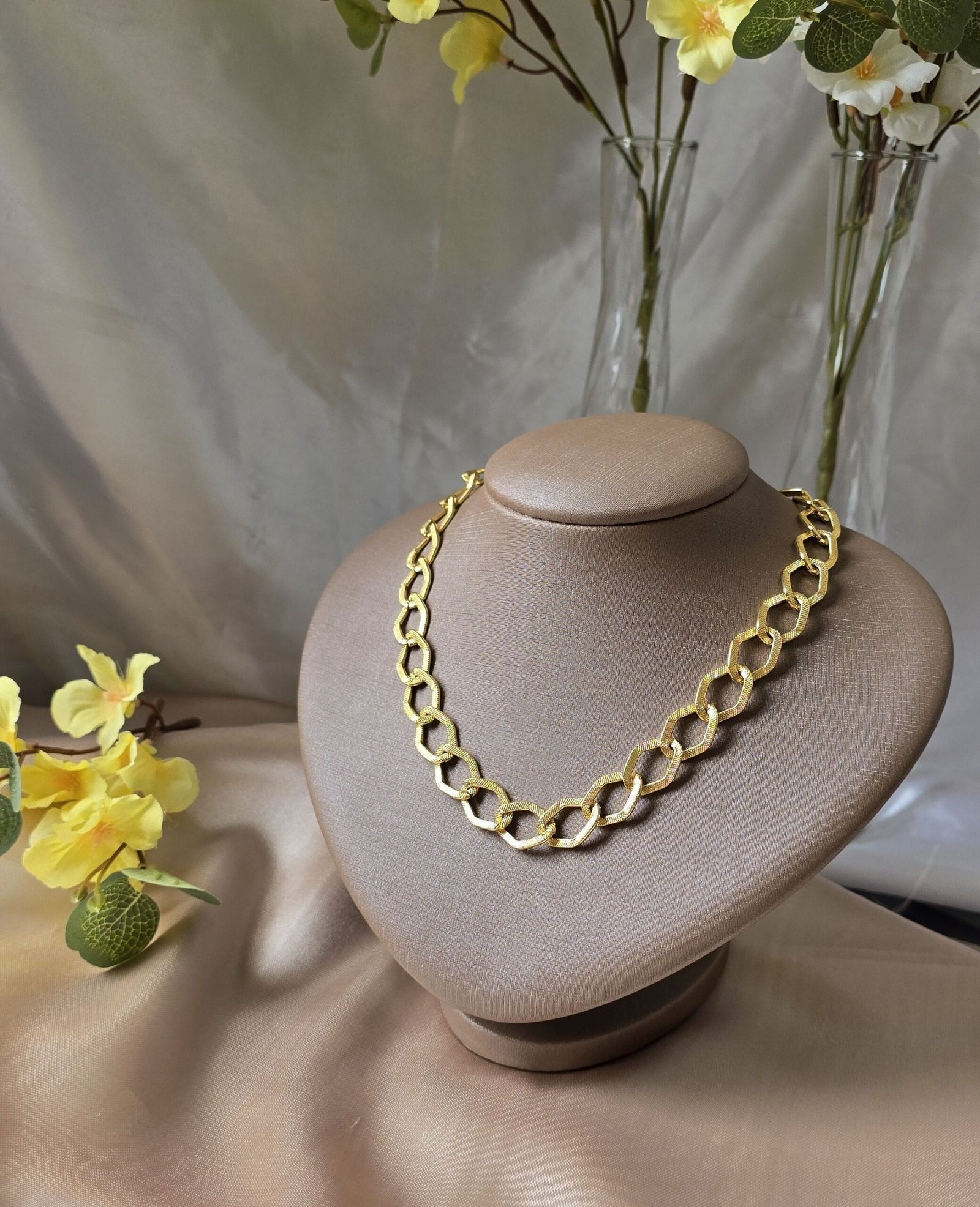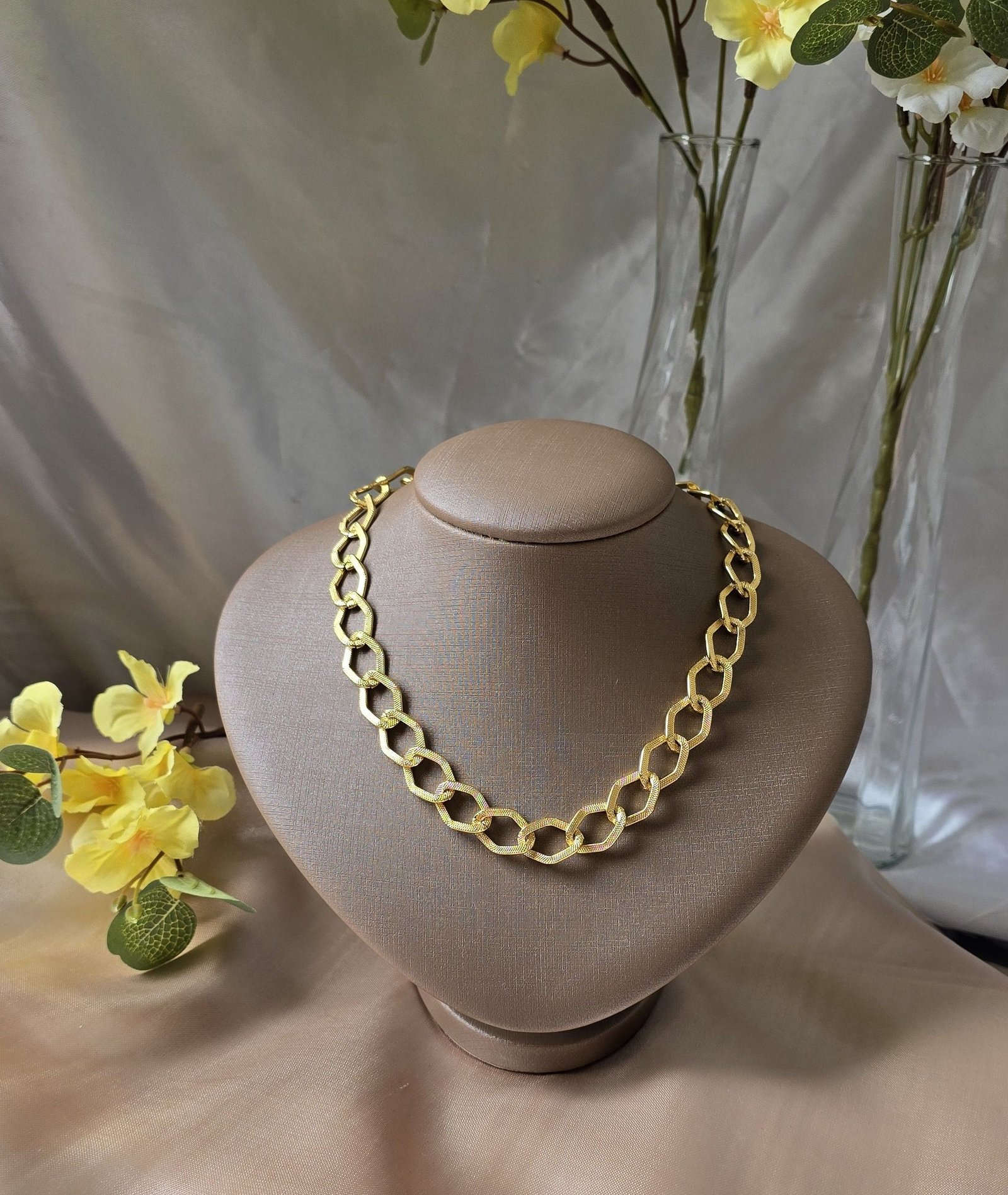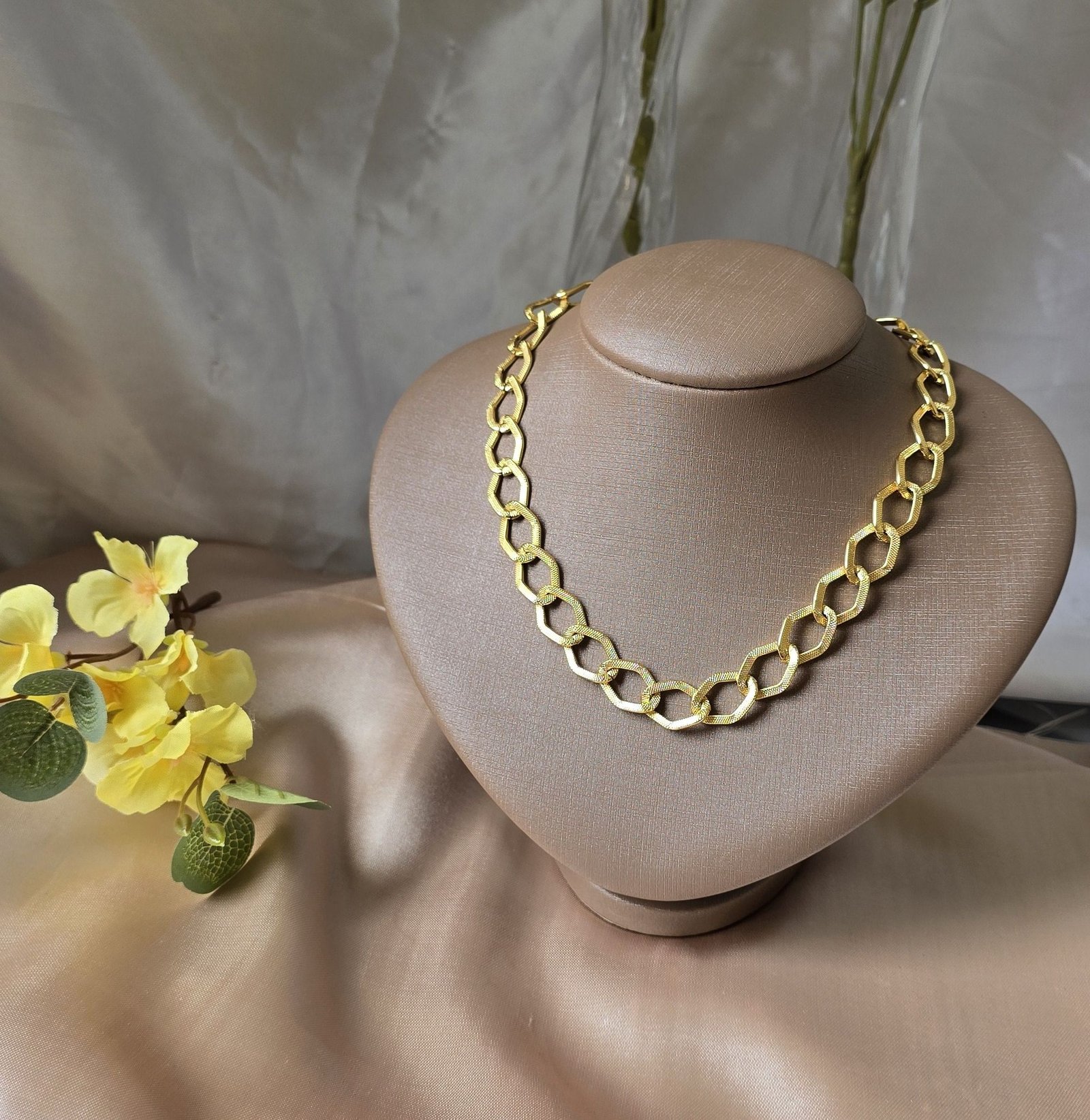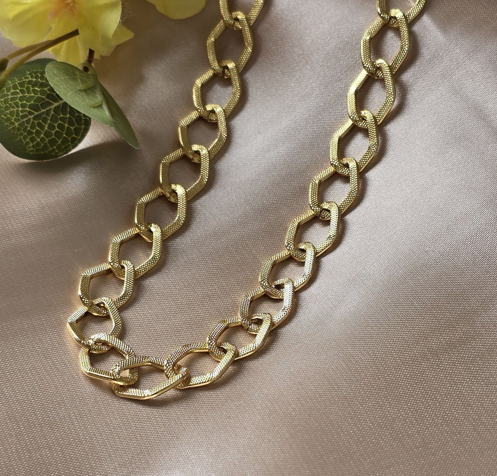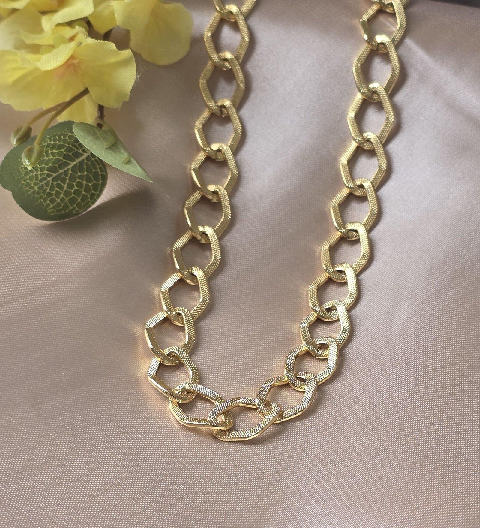 Com um design elegante e sofisticado, o cordão feminino elo médio luxo destaca-se pela sua versatilidade. Ideal para compor diferentes looks, ele combina perfeitamente com outras semijoias, permitindo criar camadas interessantes.