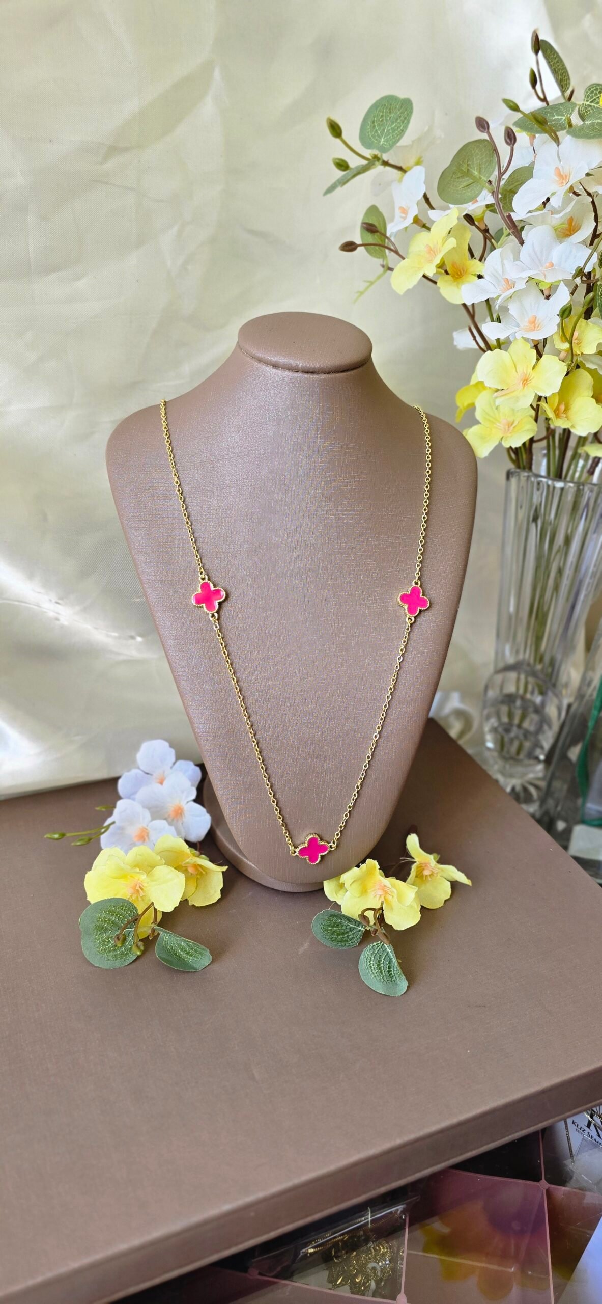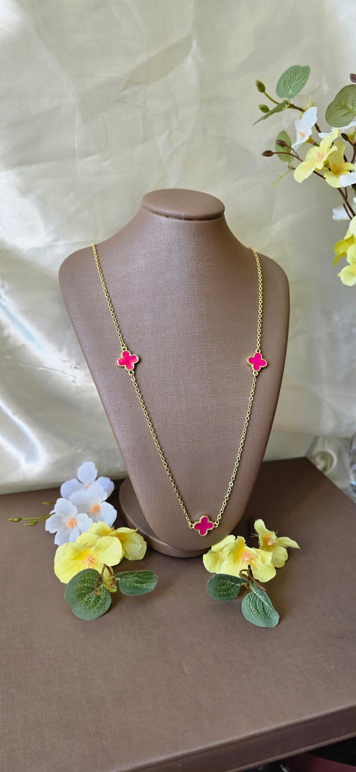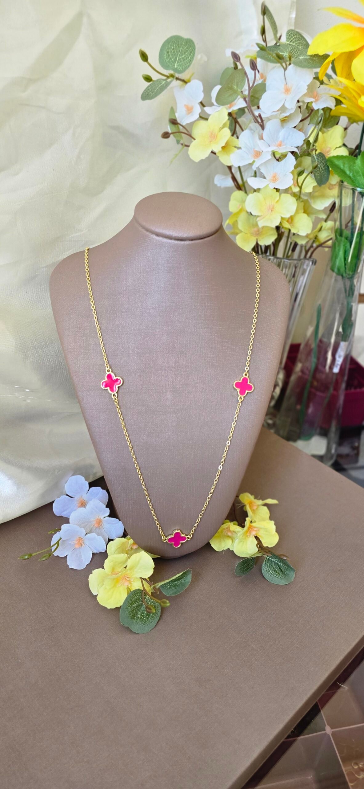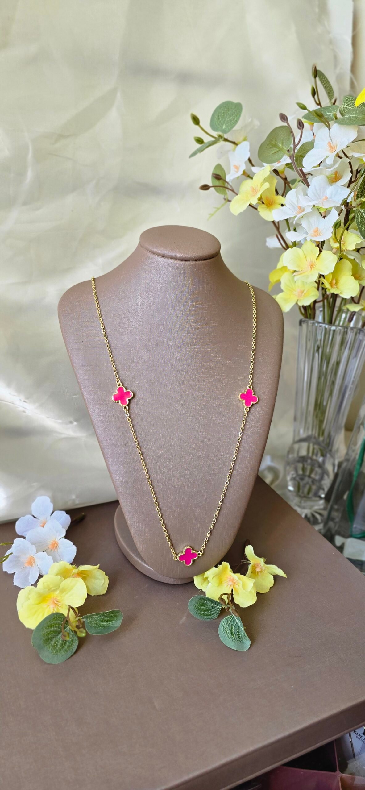 É a escolha perfeita para quem ama peças delicadas com presença marcante. Com design elegante e pingentes de trevo esmaltados, ele traz um toque de cor que valoriza qualquer produção.
