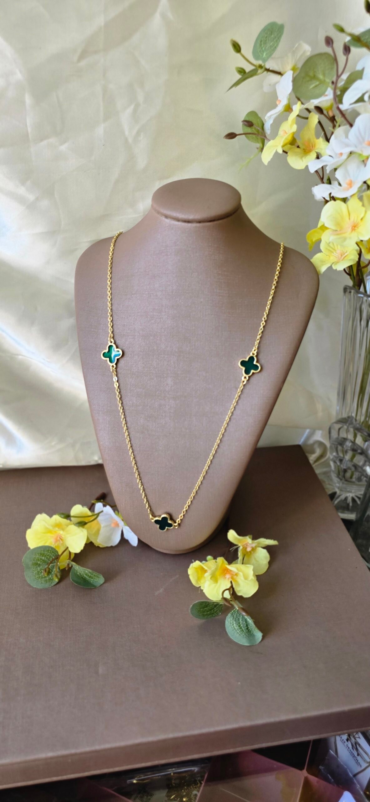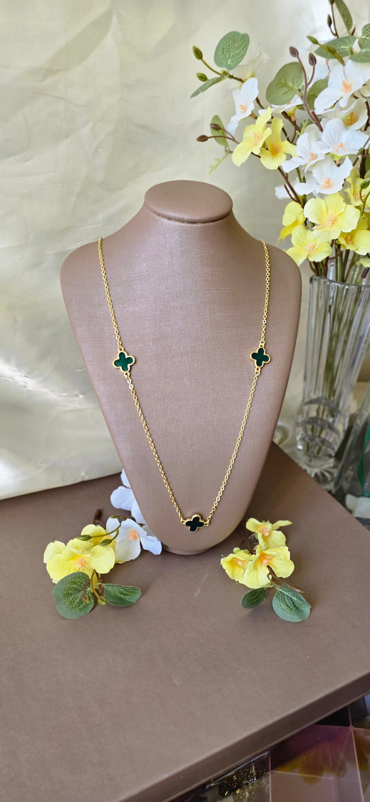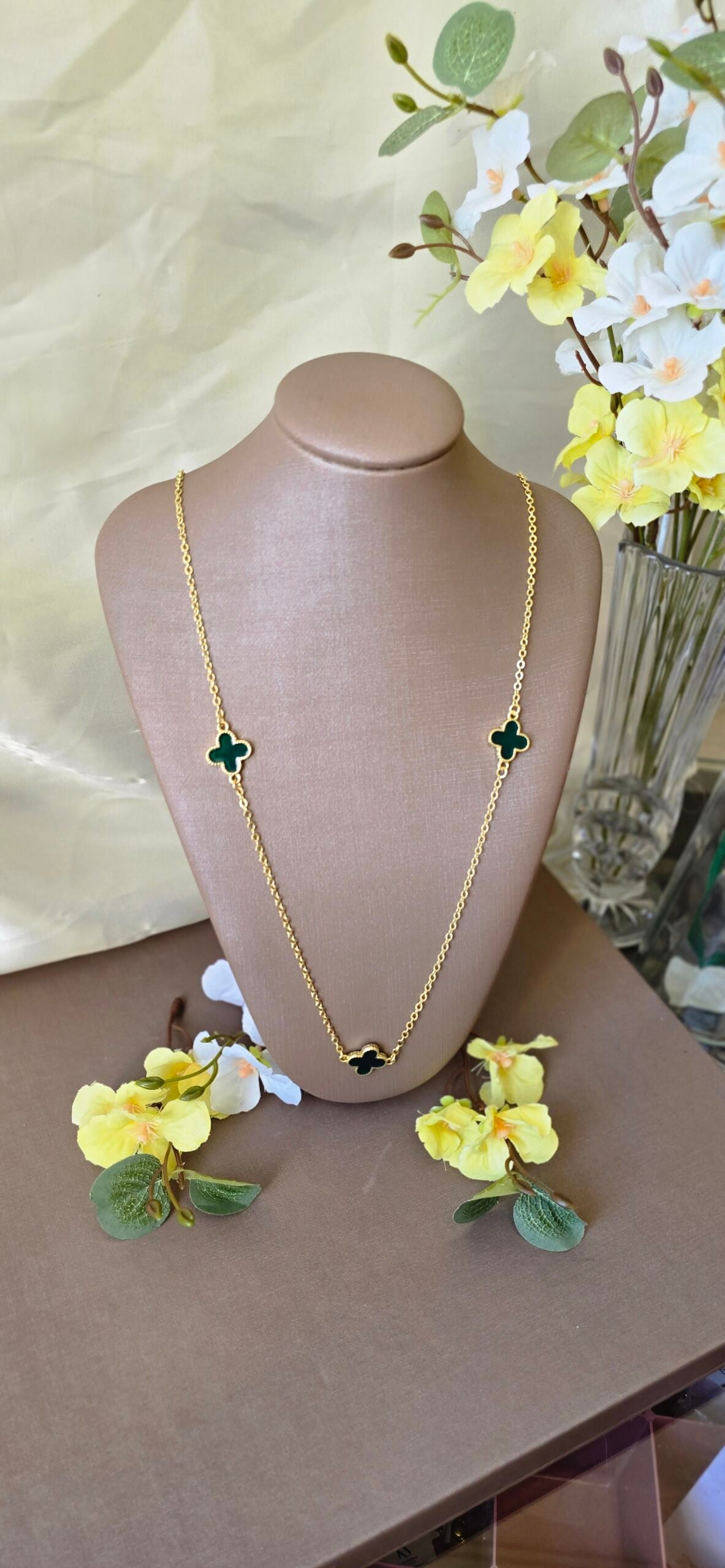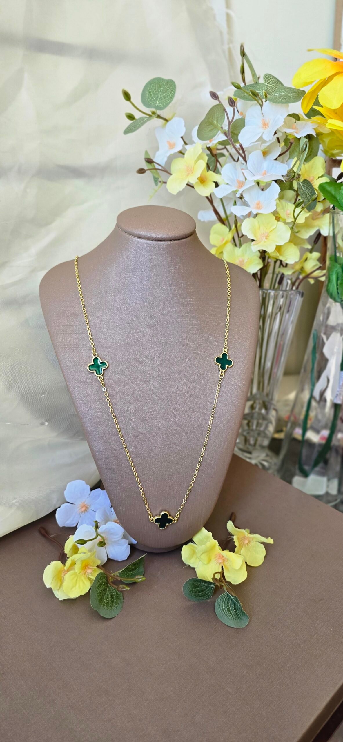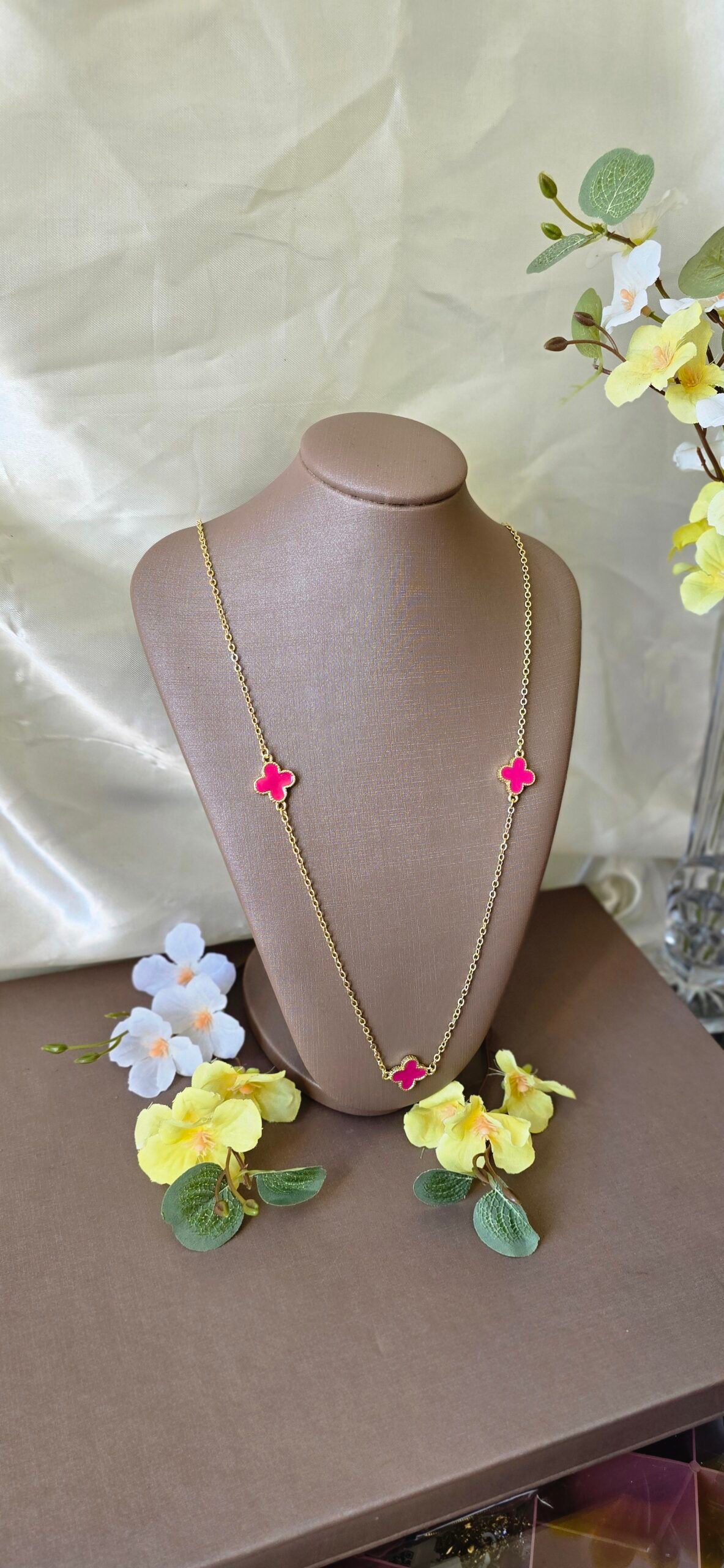 É a escolha perfeita para quem ama peças delicadas com presença marcante. Com design elegante e pingentes de trevo esmaltados, ele traz um toque de cor que valoriza qualquer produção.