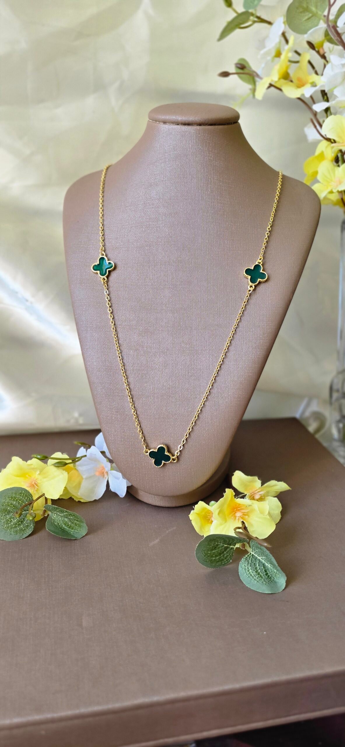 ✨Cordão Longo Dourado Trevo Esmaltado