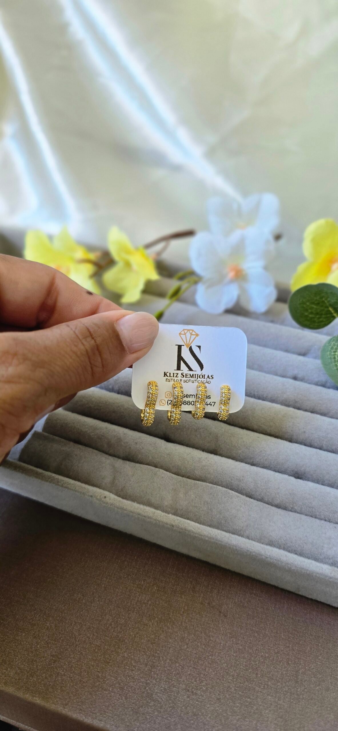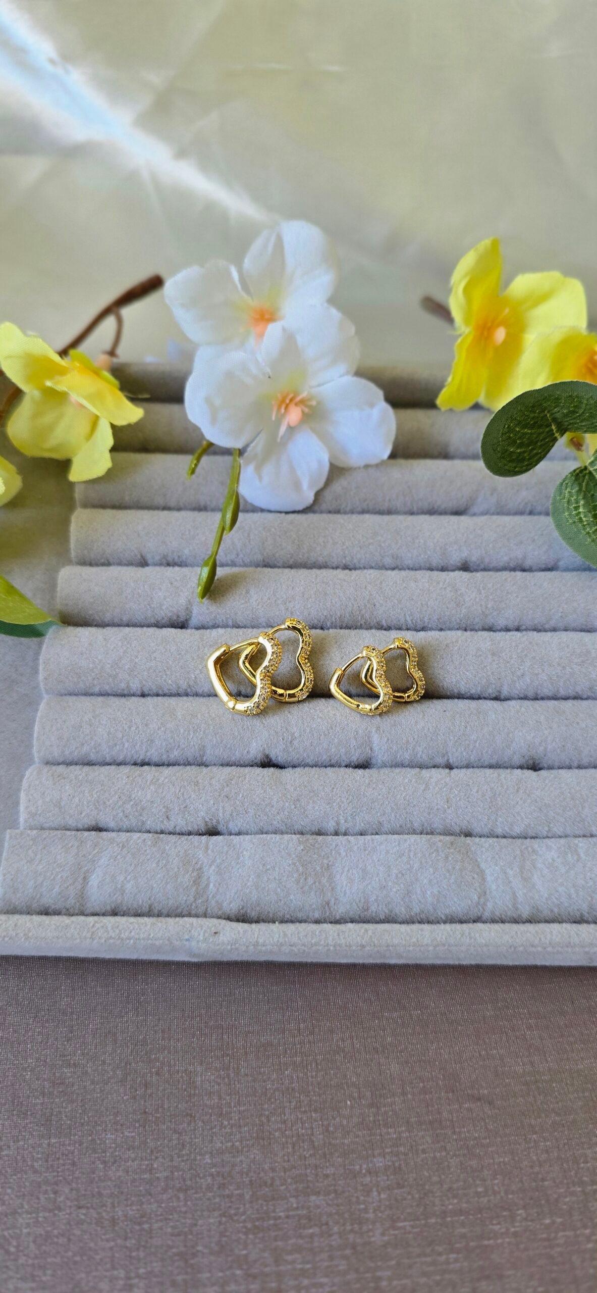 O Duo de Brincos Argolinha Coração Cravejado – Delicadeza e Brilho é a combinação perfeita entre romantismo e sofisticação. Com design em formato de coração e acabamento dourado elegante, as argolinhas são cravejadas com zircônias que proporcionam um brilho delicado e refinado.