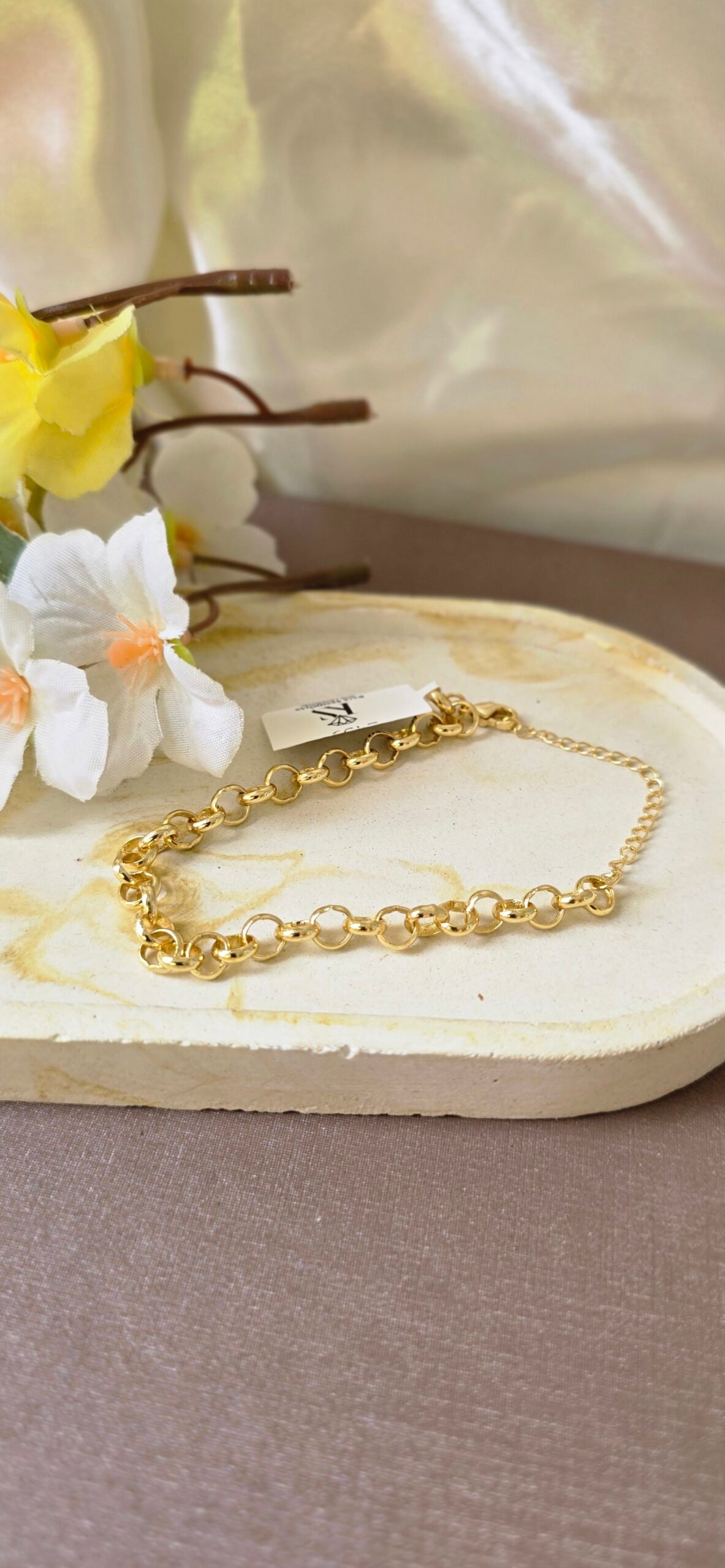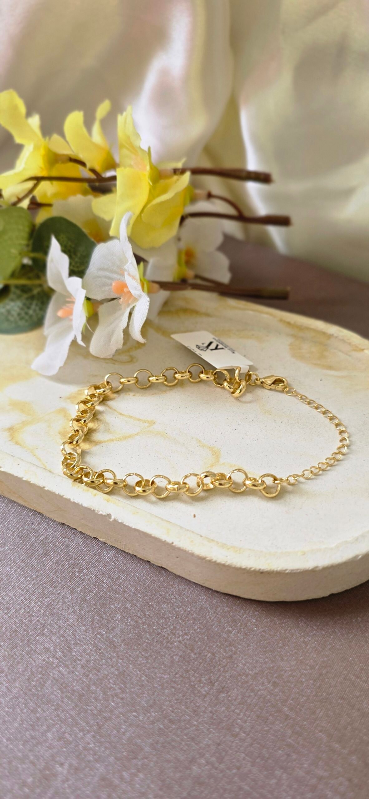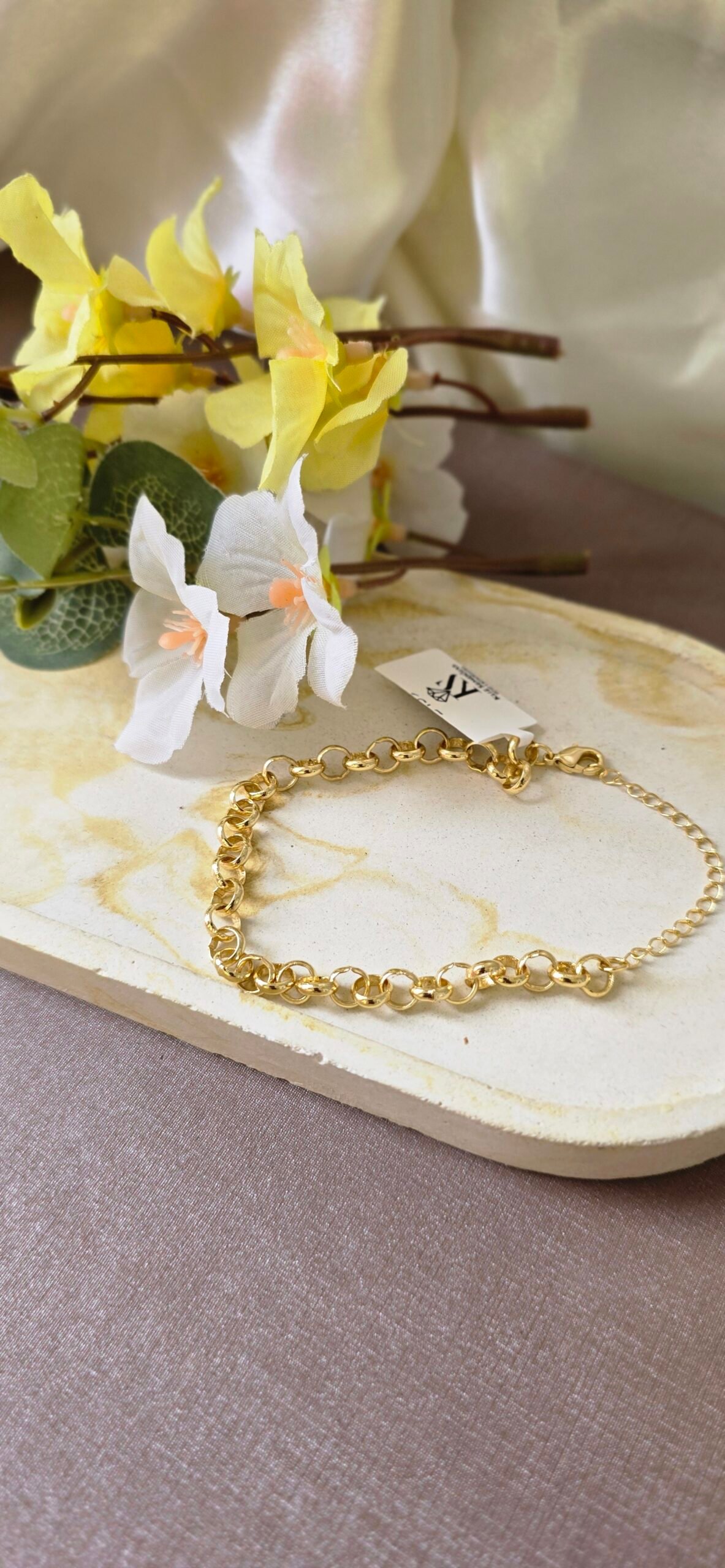 A Pulseira Feminina Dourada Elo Português é a definição de elegância atemporal. Com elos arredondados e acabamento polido, proporciona um brilho sofisticado que valoriza o pulso com delicadeza e estilo. Seu design clássico combina perfeitamente com produções do dia a dia ou ocasiões especiais, tornando-se uma peça versátil e indispensável no porta-joias feminino.